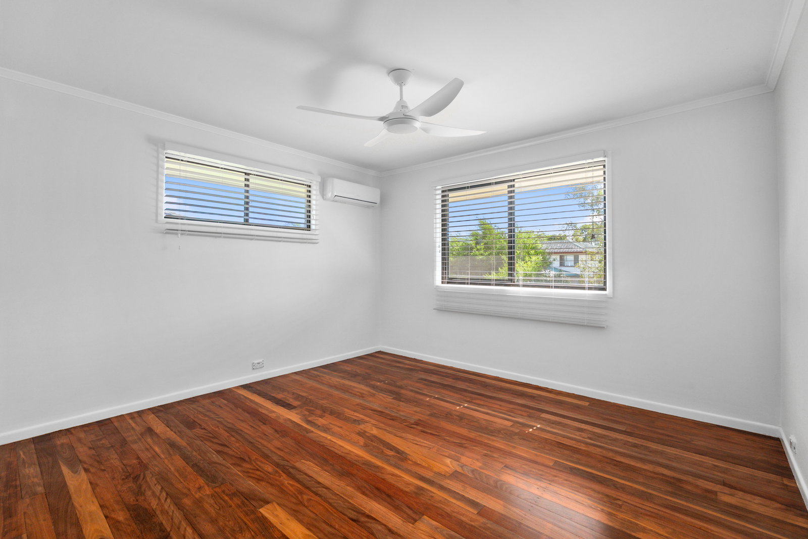 - Three generous bedrooms, all with built-in wardrobes, including a master with air conditioning