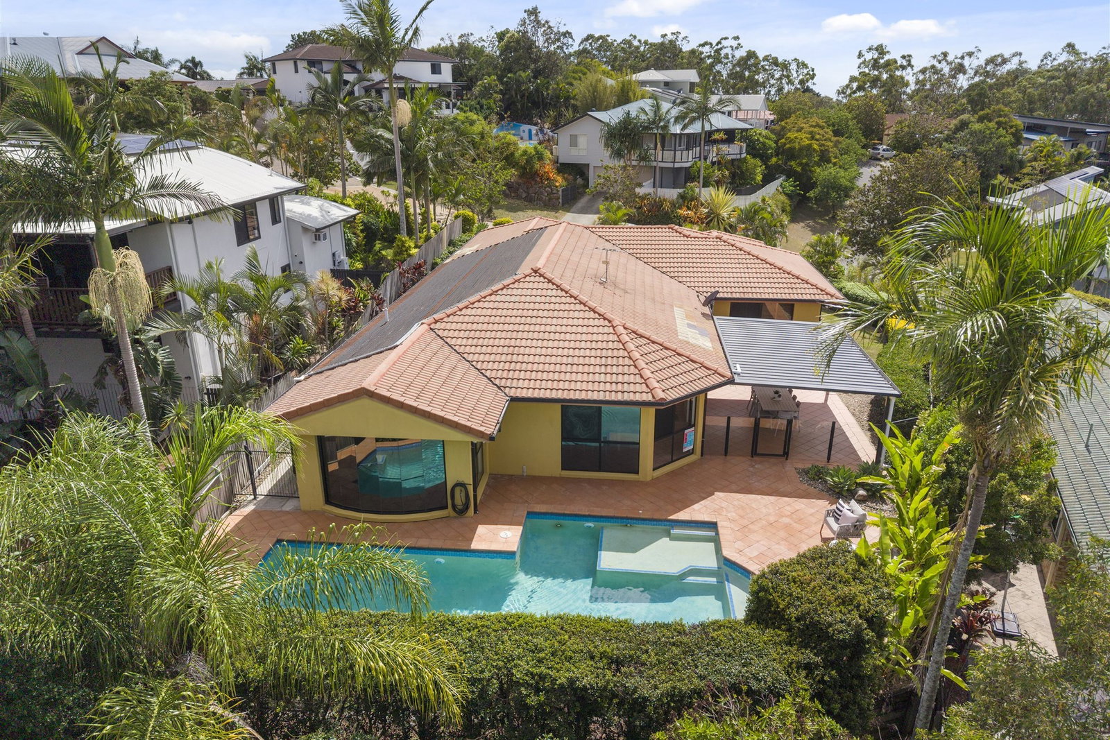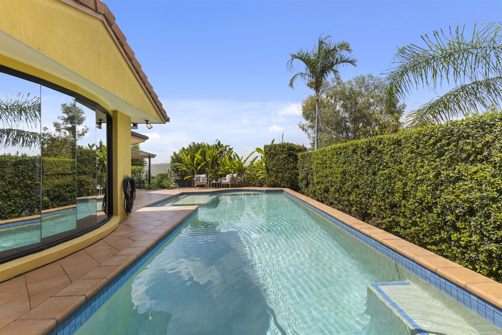 • Solar-heated saltwater pool with feature lighting