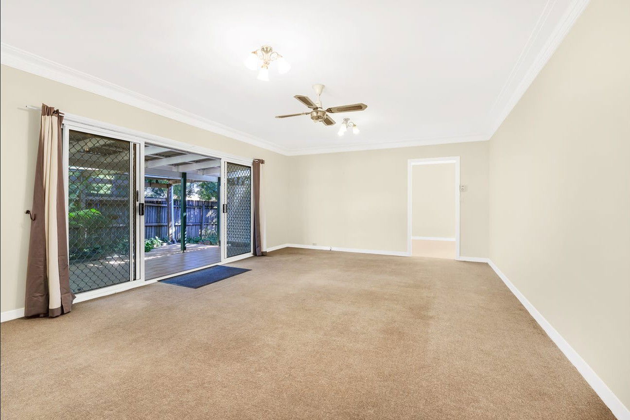 - Spacious lounge room with fan, carpet & AC