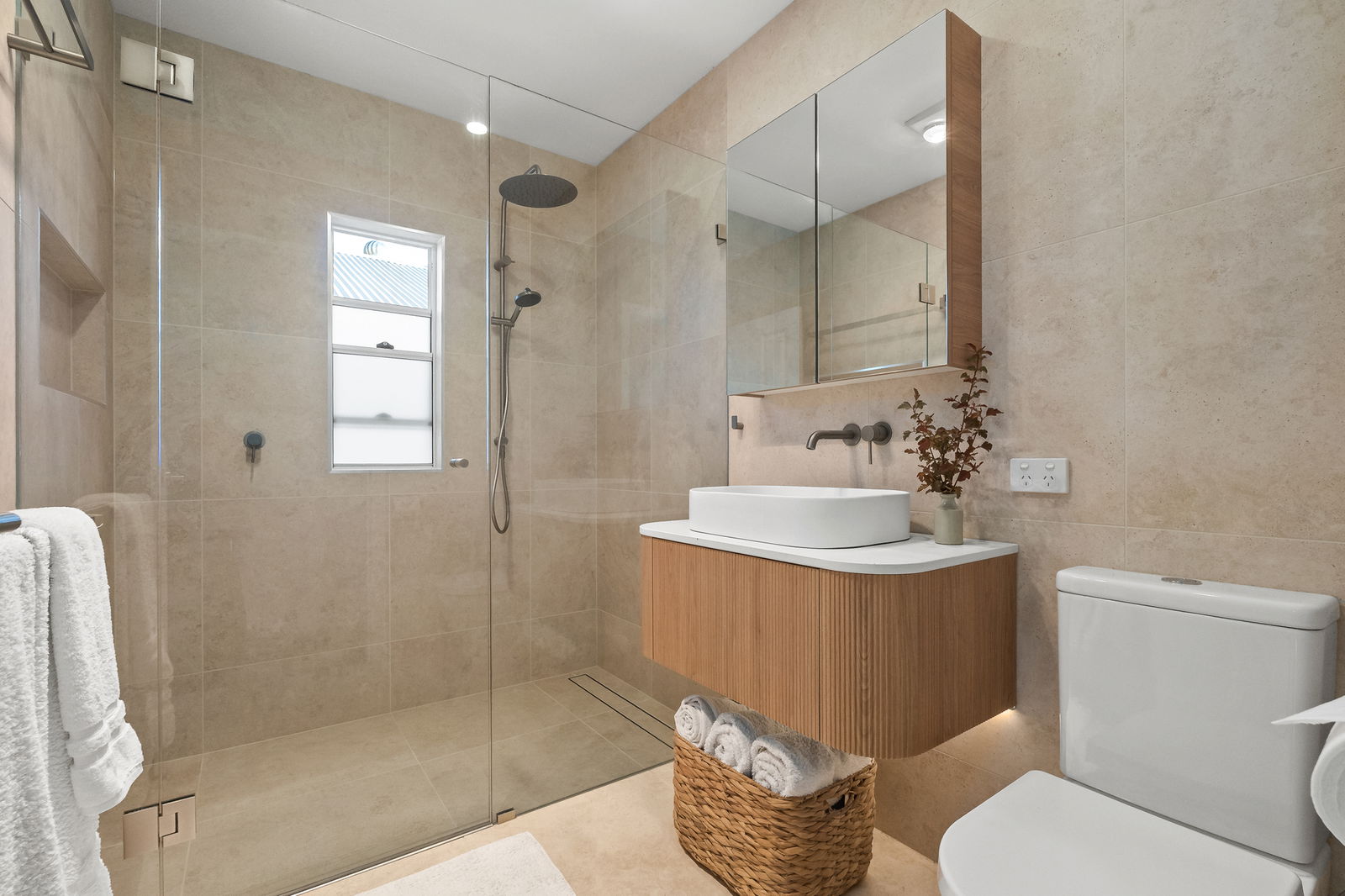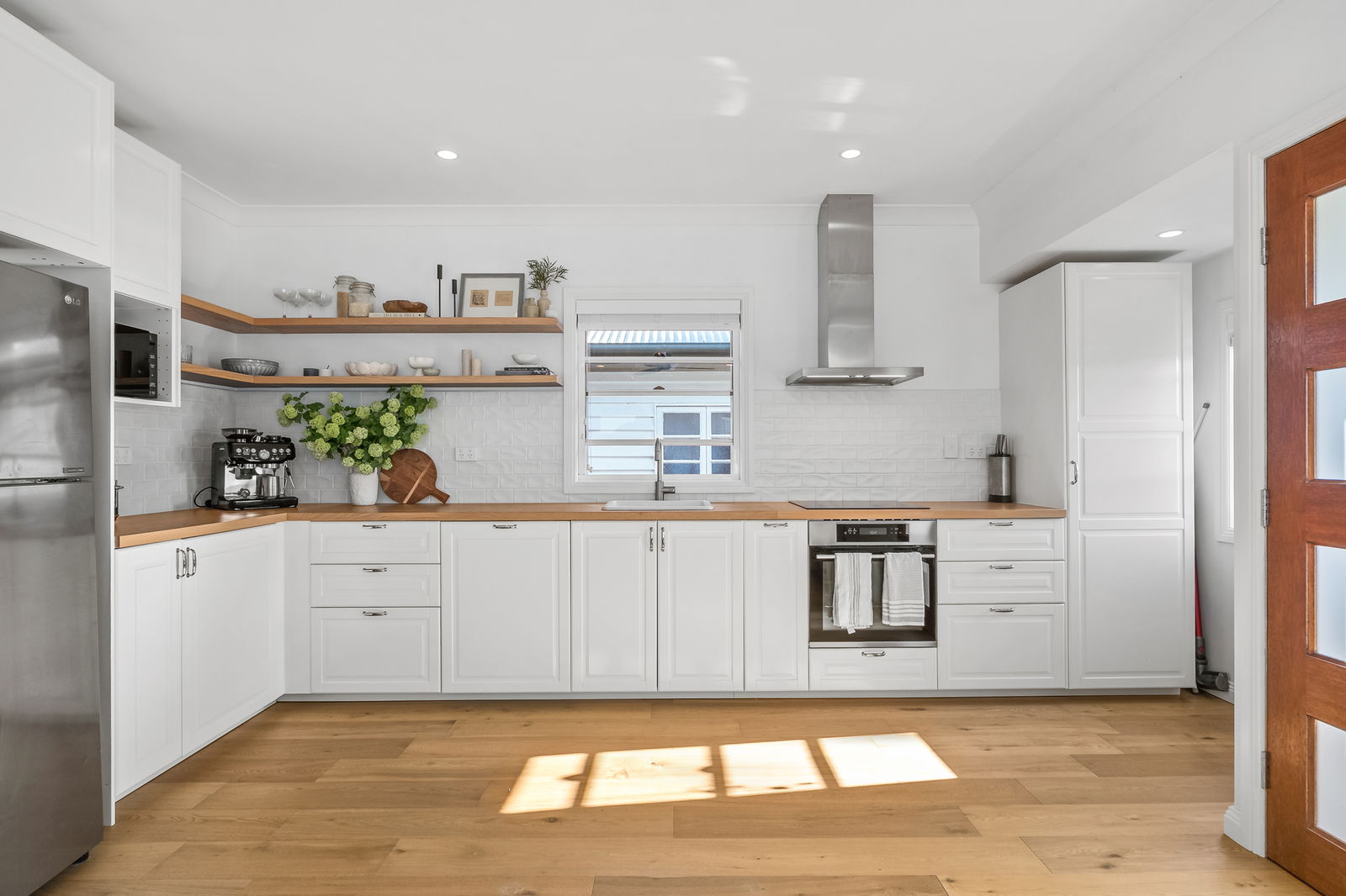 - Stylish kitchen with timber bench tops and integrated dishwasher