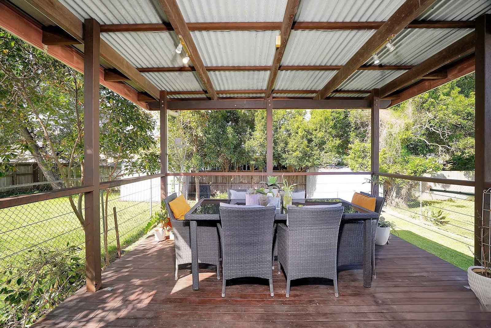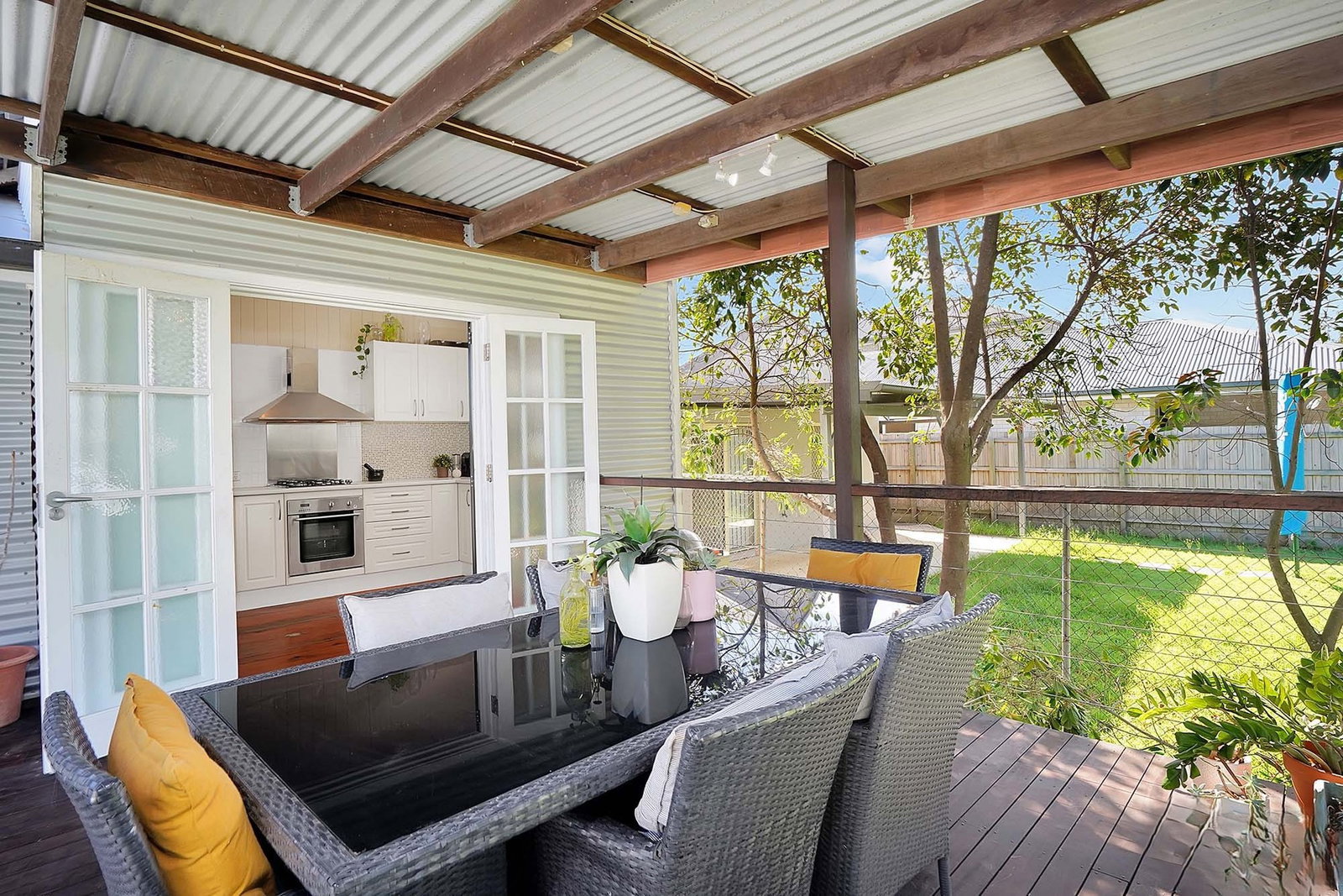 - Kitchen opens to a cool covered deck overlooking yard