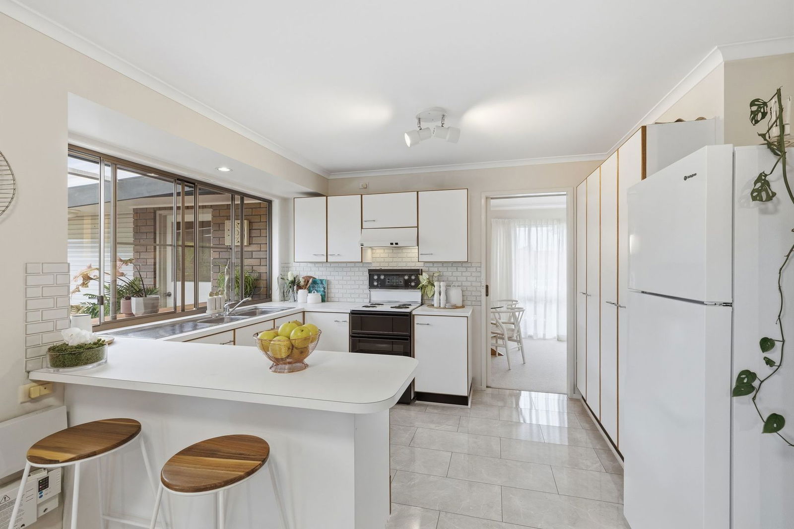 - Centrally located kitchen with ample storage, bench space and servery window
