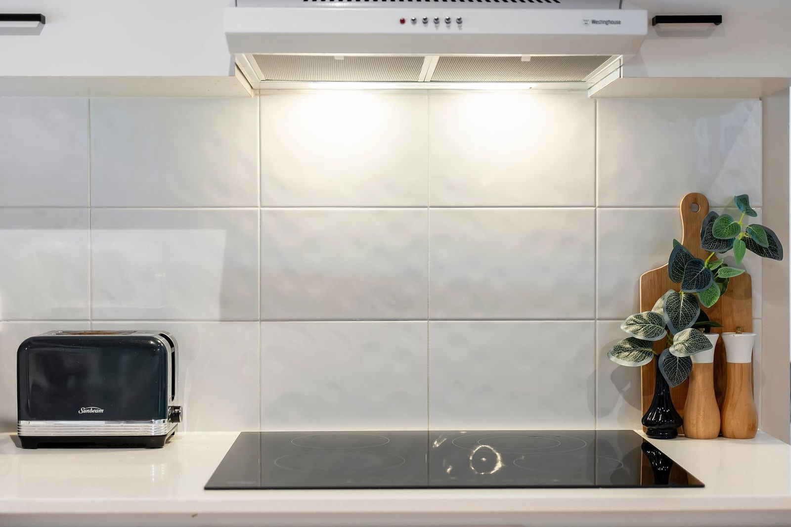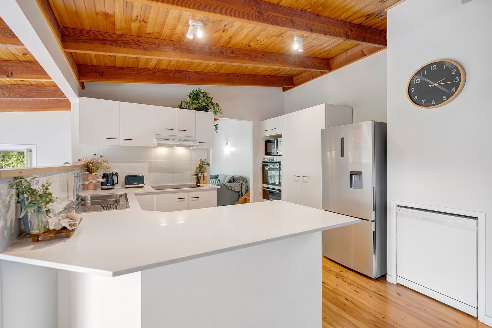 - Spacious kitchen with electric cooktop, rangehood and dishwasher, plus stone benchtop with breakfast bar