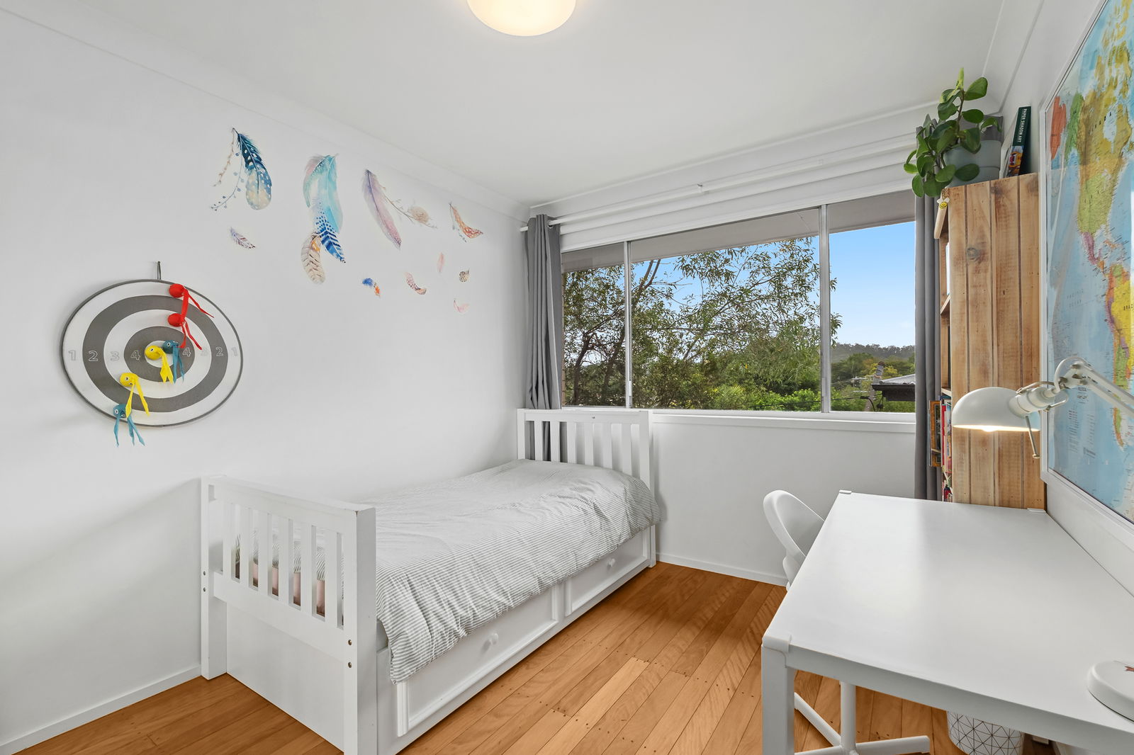 - Fully fenced, private yard with established trees and natural shade