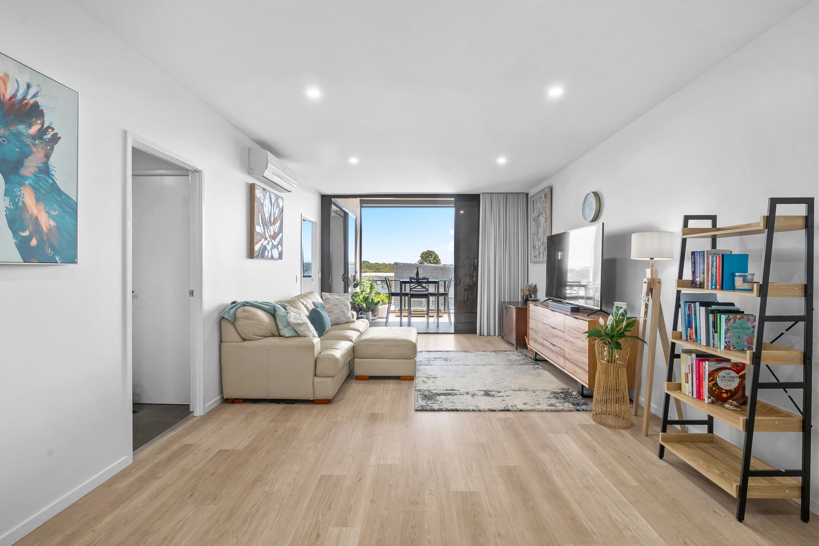 • Spacious open-plan living and dining area flowing seamlessly from the kitchen, complete with split-system air conditioning, hybrid flooring, and high ceilings