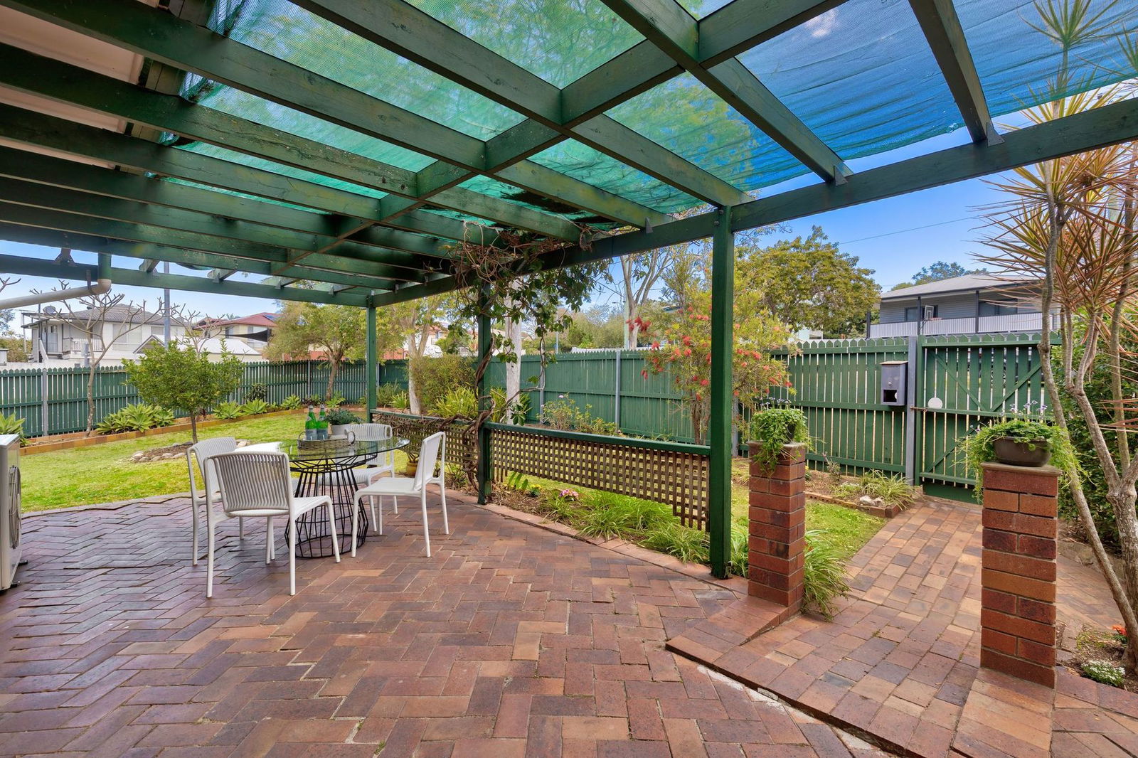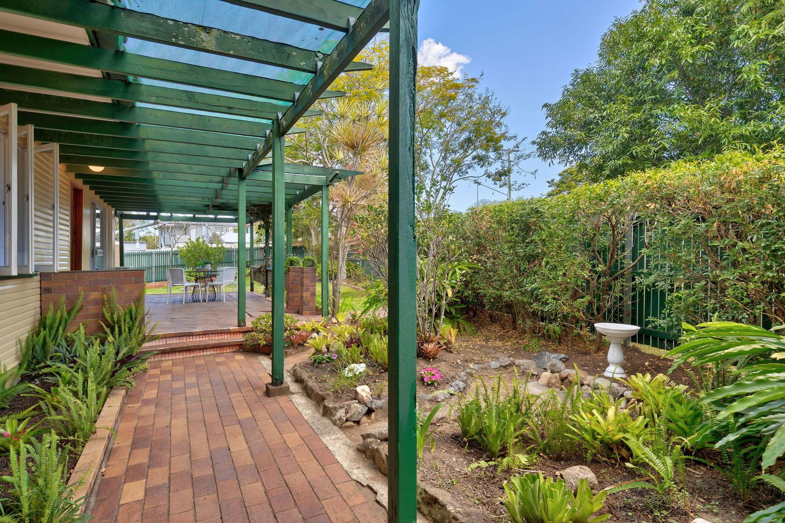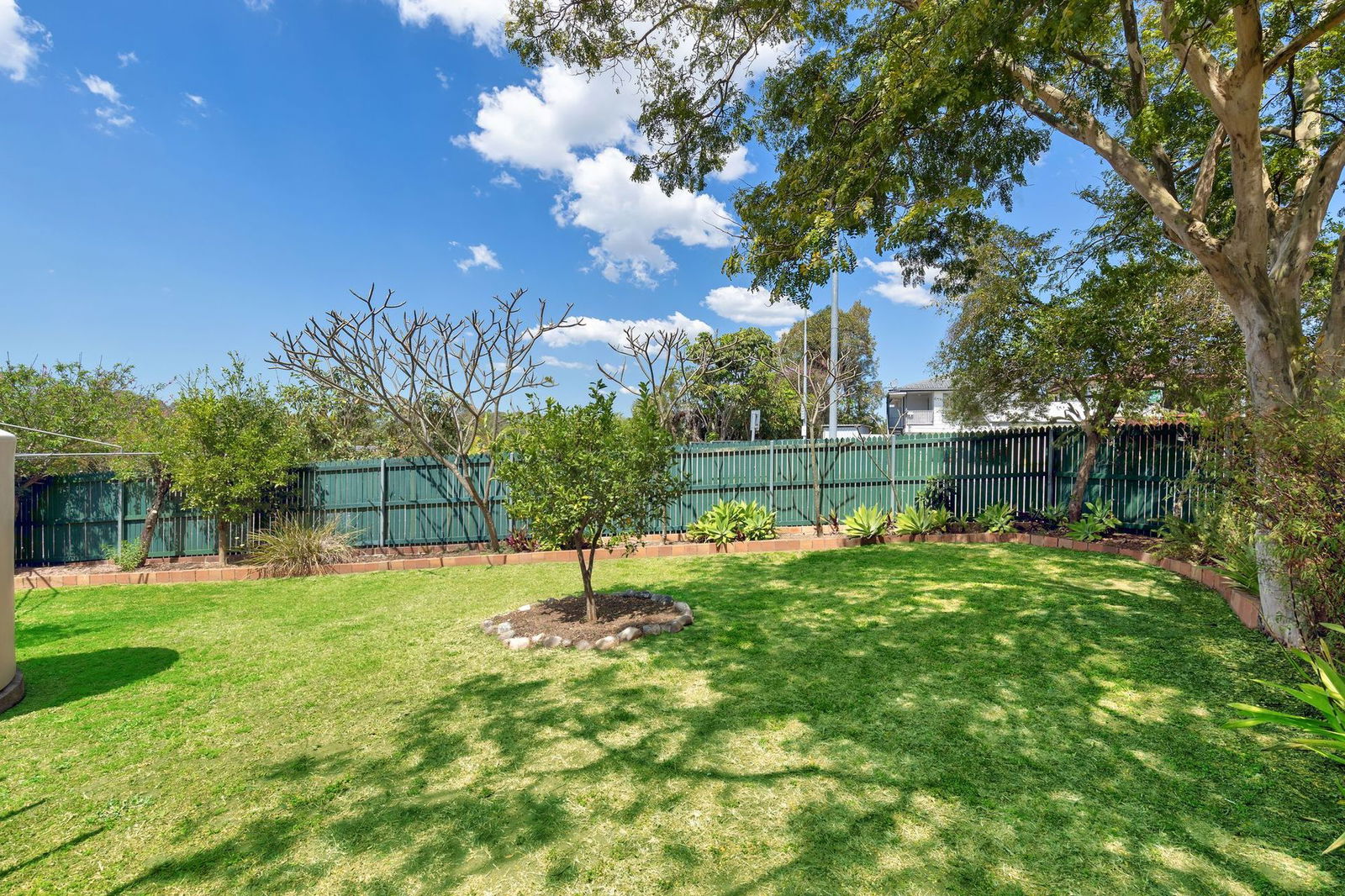 - Large yard with established gardens and water tank