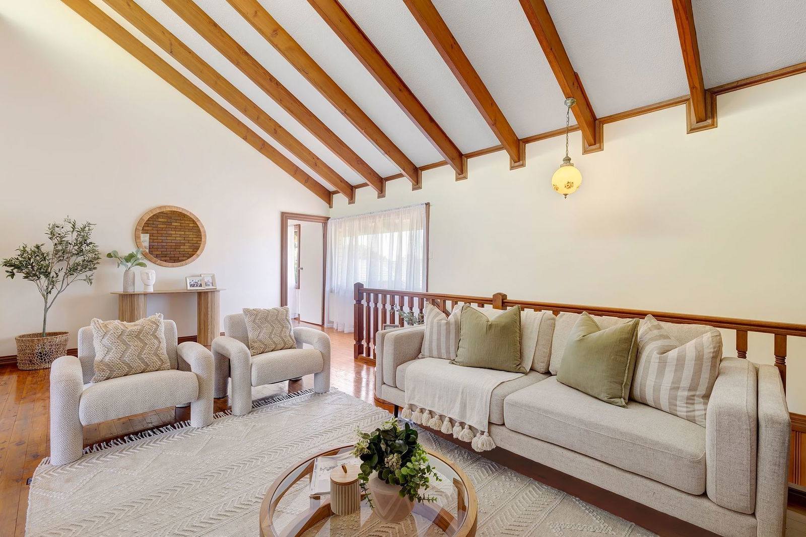 - Second living area upstairs with stunning raked ceilings