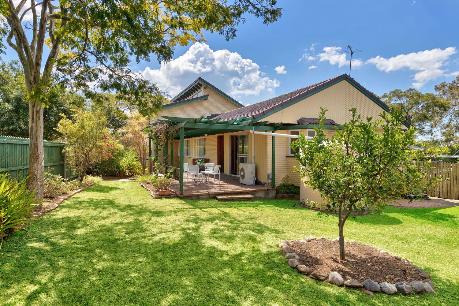 - Large yard with established gardens and water tank