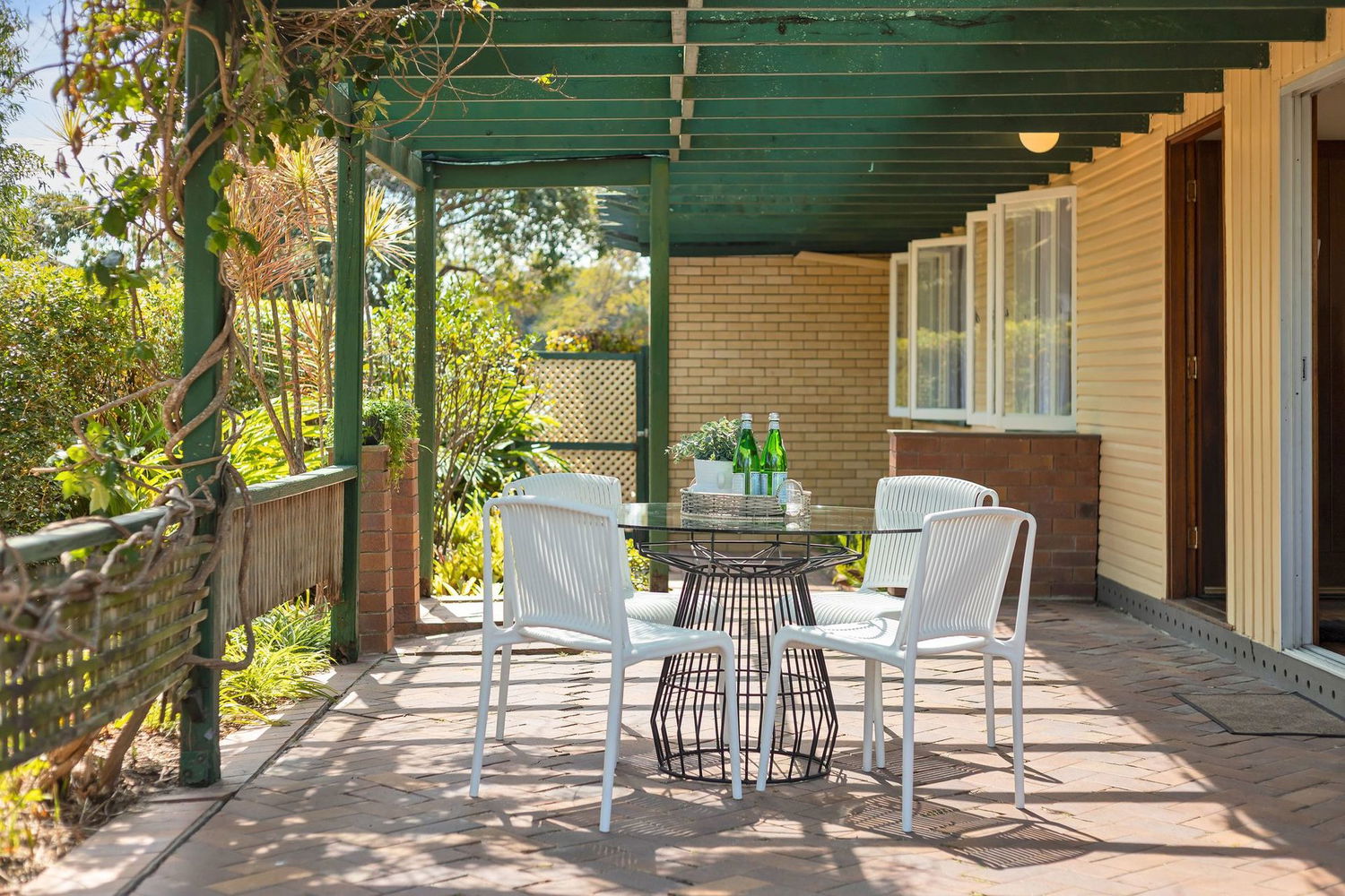- Air-conditioned living/dining room opening out to the covered patio area