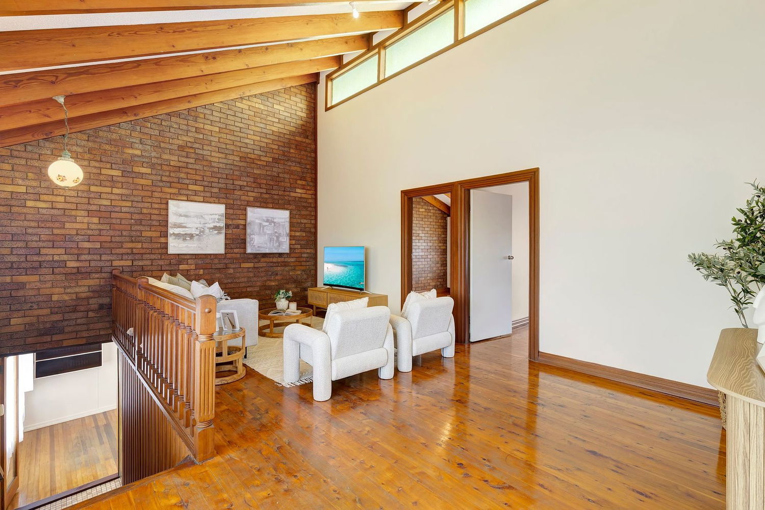 - Second living area upstairs with stunning raked ceilings
