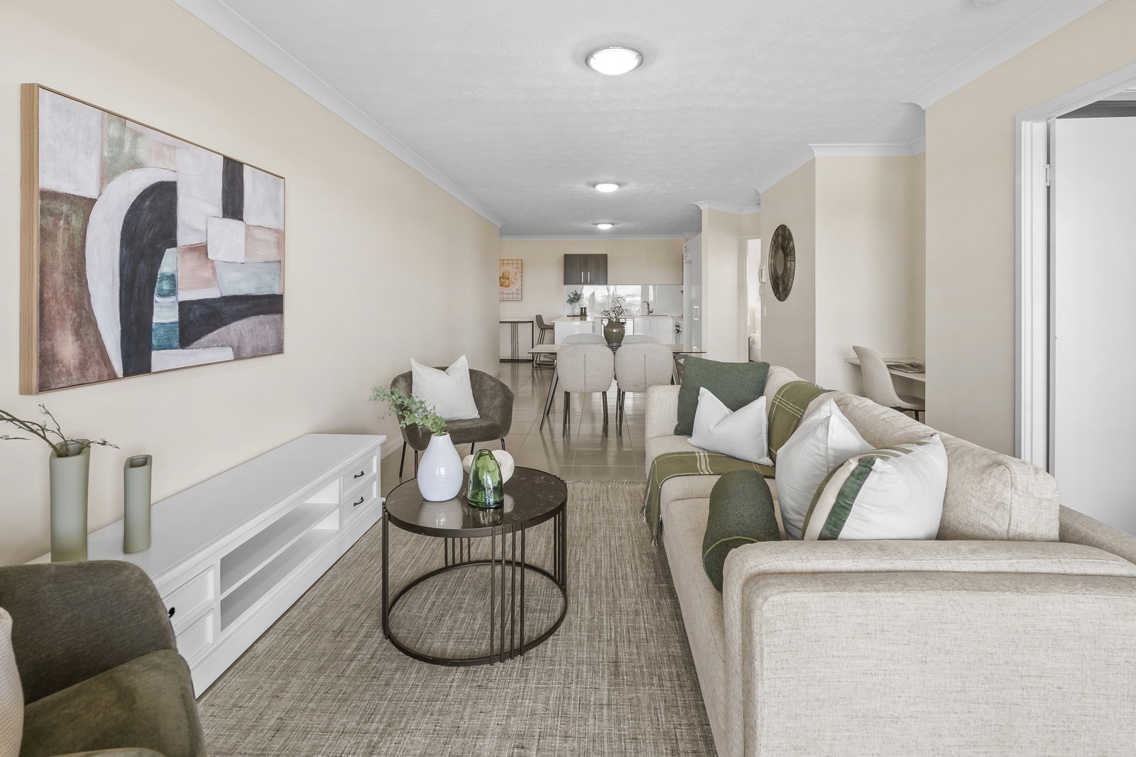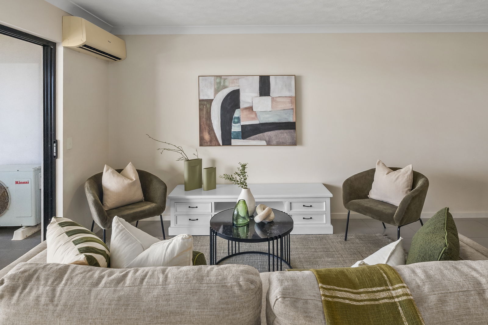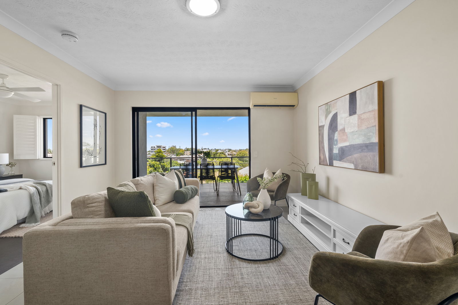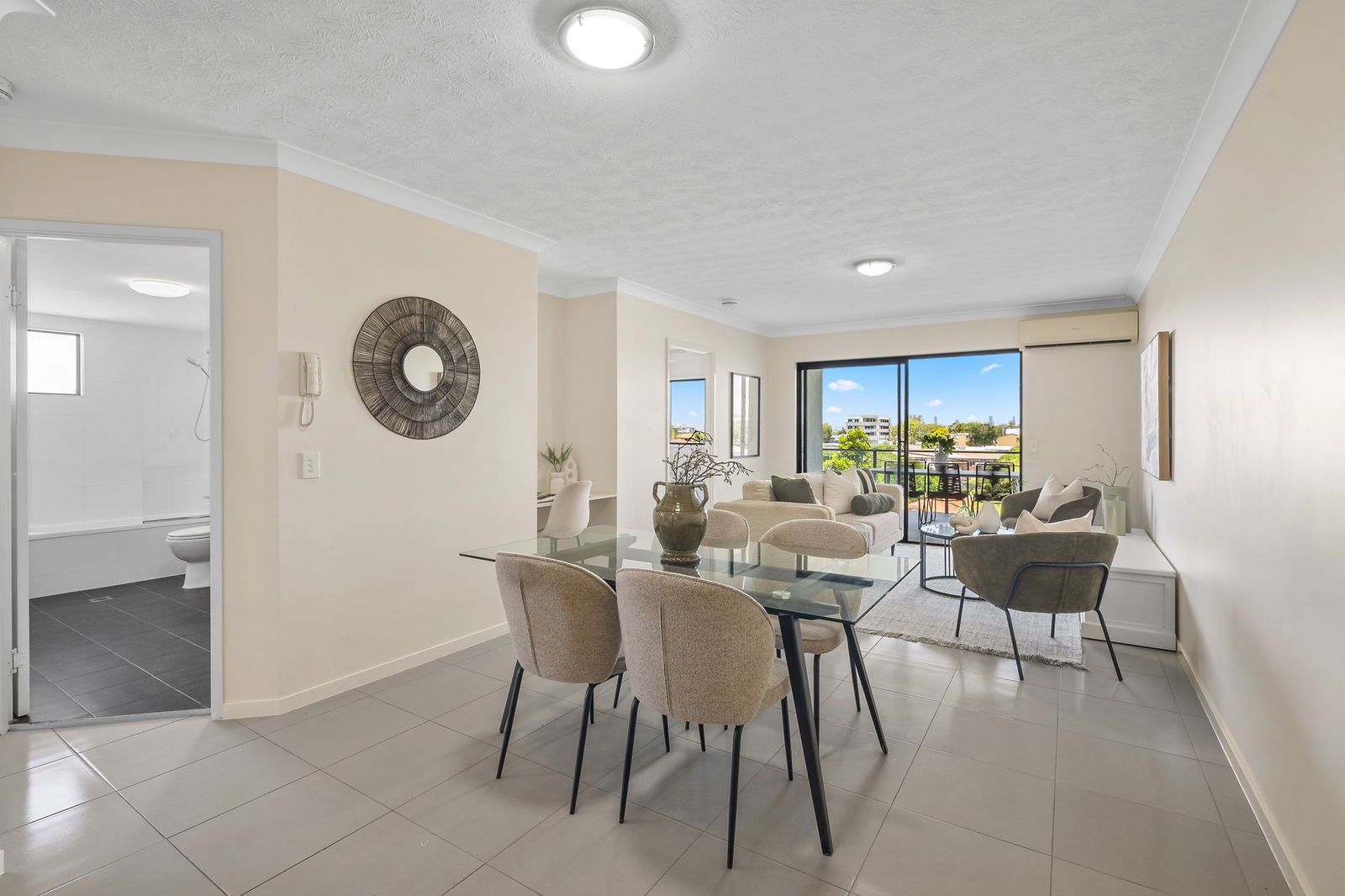 • Bright open-plan living and dining with a/c