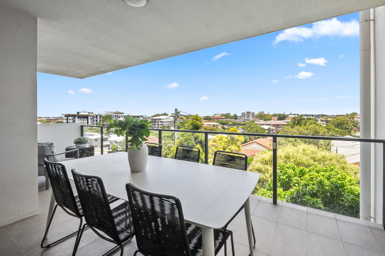 • Covered balcony with expansive city views