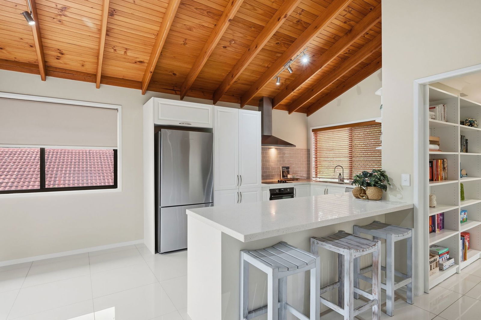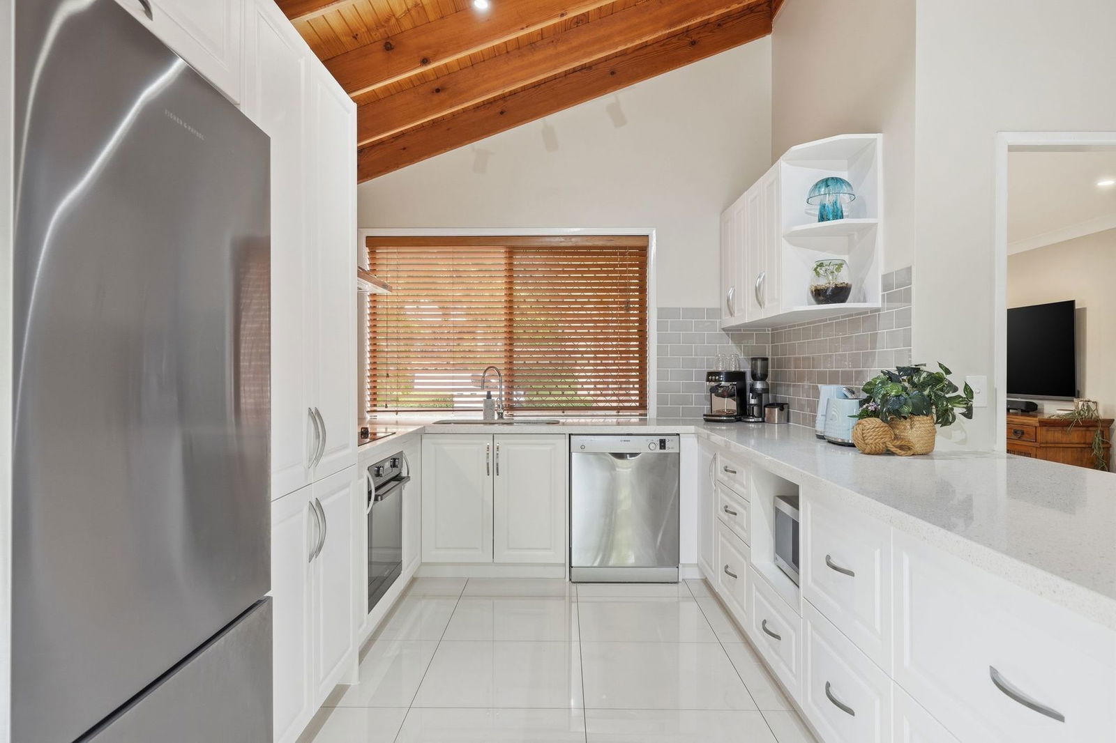 - Modern kitchen with stone bench tops, breakfast bar and dishwasher