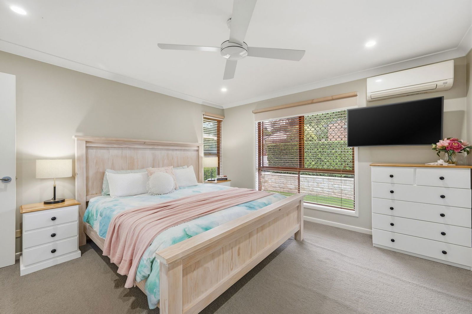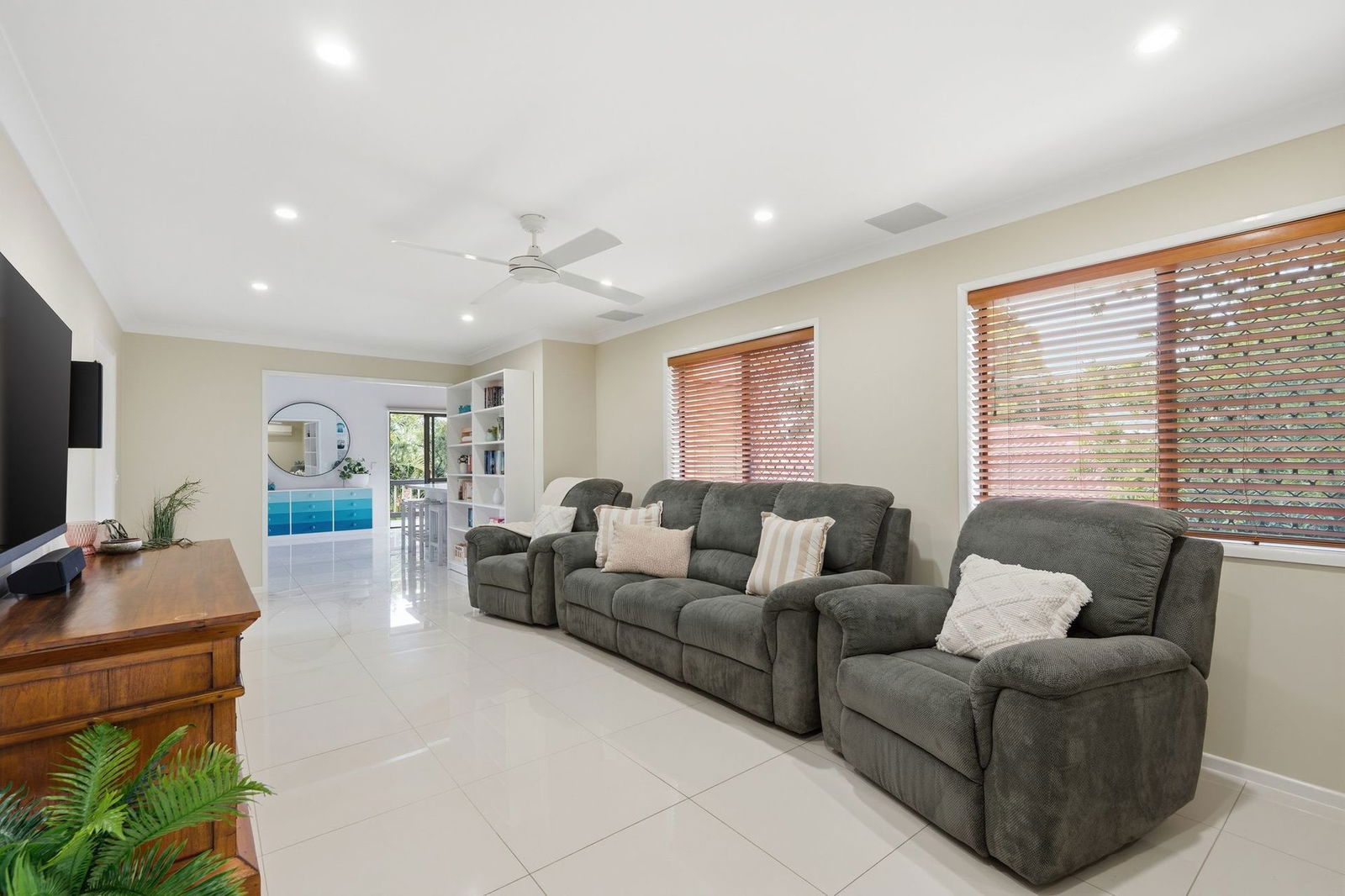 - Three generously sized bedrooms with built-in robes, air conditioning and ceiling fans