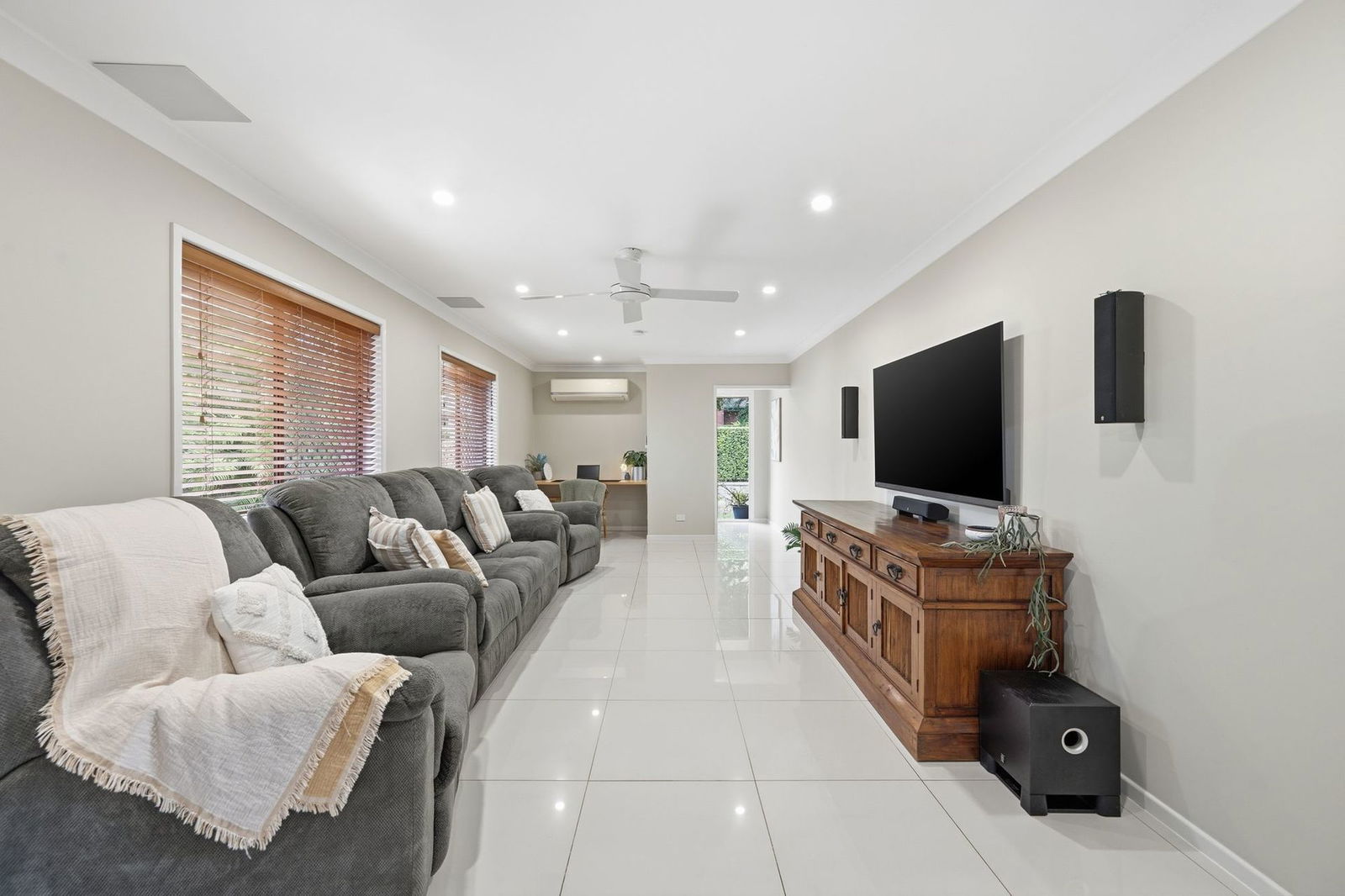 - Large living area with security screens, air conditioning and study nook