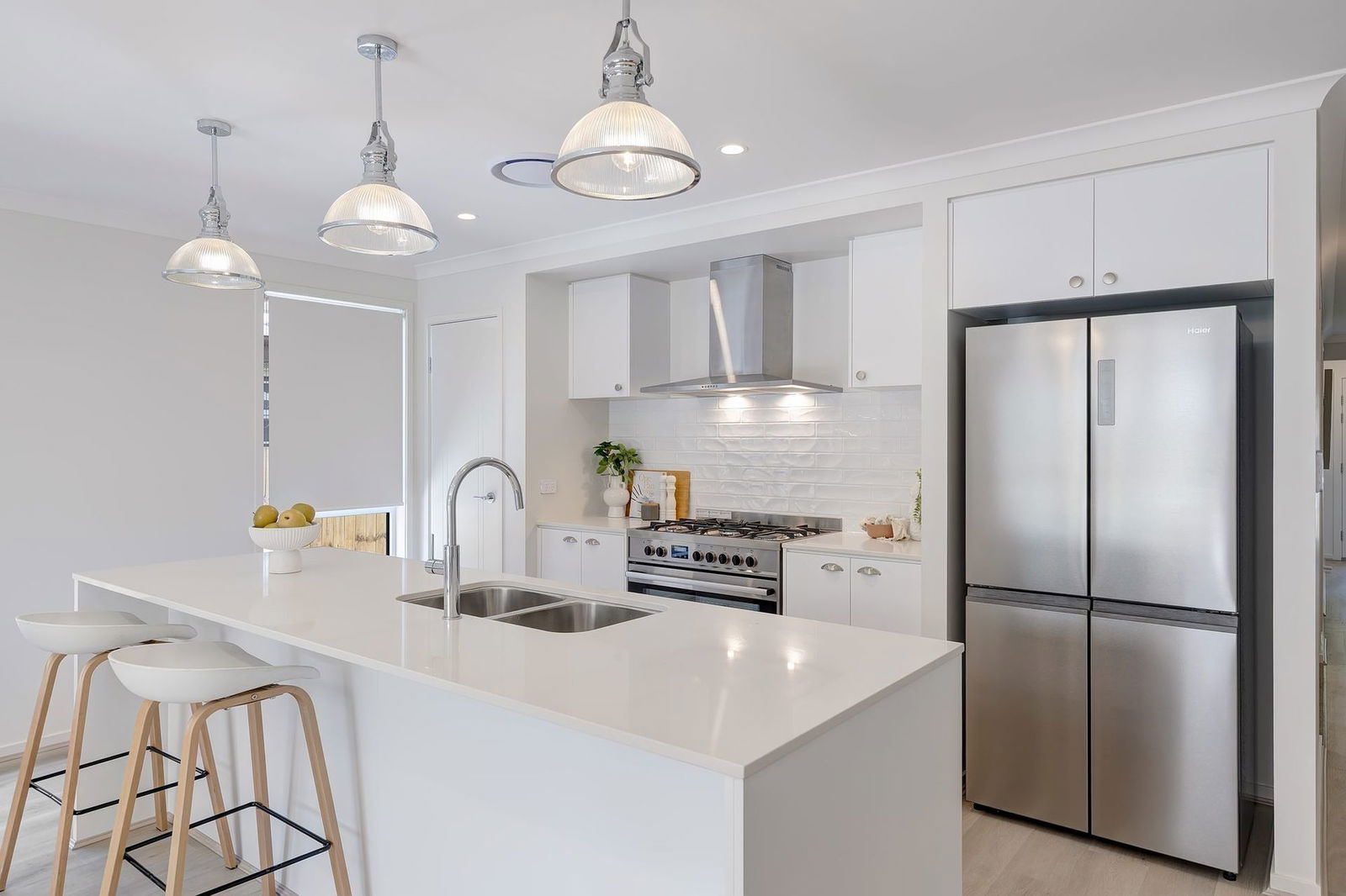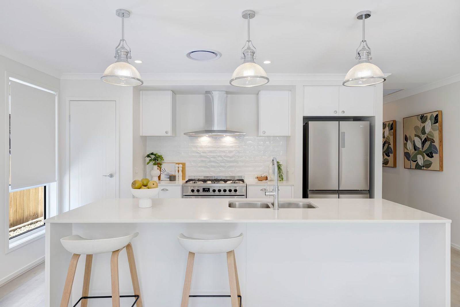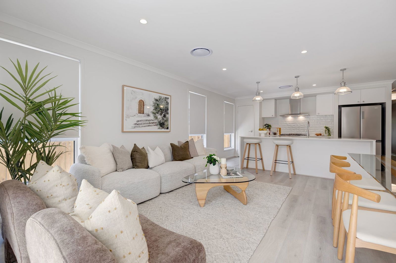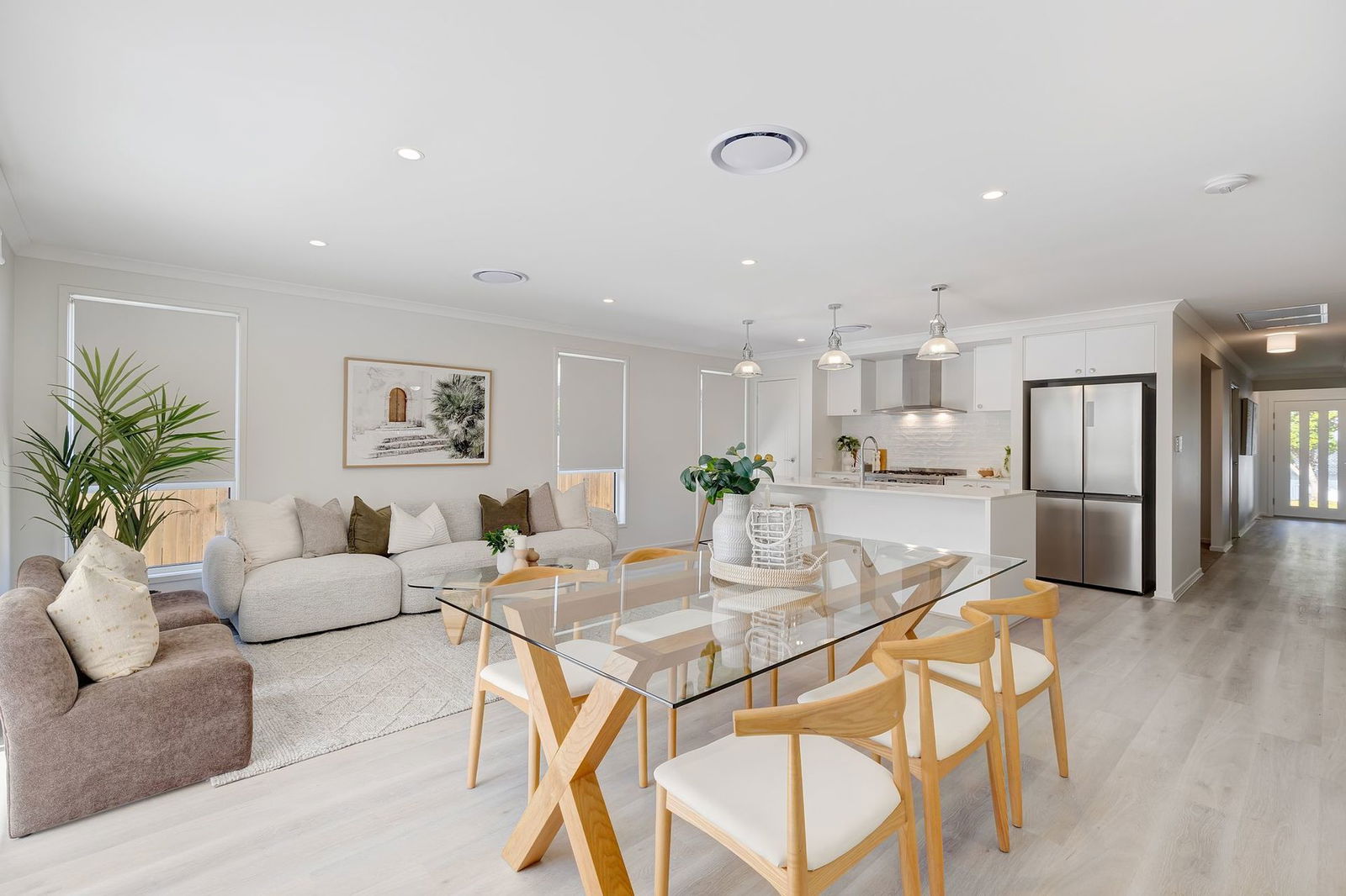 This brand-new, Brighton Homes built residence captures timeless elegance, paired with the finest modern inclusions for a lifestyle of effortless comfort and sophistication. From its Hamptons façade to its thoughtfully designed interiors, every detail has been crafted with quality, style, and longevity in mind. Built with a Truecore® steel frame and Kordon termite protection system, this home promises strength and durability for years to come. Enjoy year-round comfort with a four-zone Actron Air ducted reverse-cycle system, supported by a 6.6kW solar system and three-phase power for energy efficiency. A designer kitchen featuring Caesarstone benchtops, gas cooking and a Haier Stainless Steel 469L fridge. Added extras include a premium 7.5kg washing machine, and a 5kg dryer, ensuring the home is truly move-in ready. This residence blends contemporary luxury with everyday practicality. Perfectly finished and ready to enjoy, this exceptional new home offers an unmatched opportunity to embrace modern living in a setting defined by comfort, craftsmanship, and style.