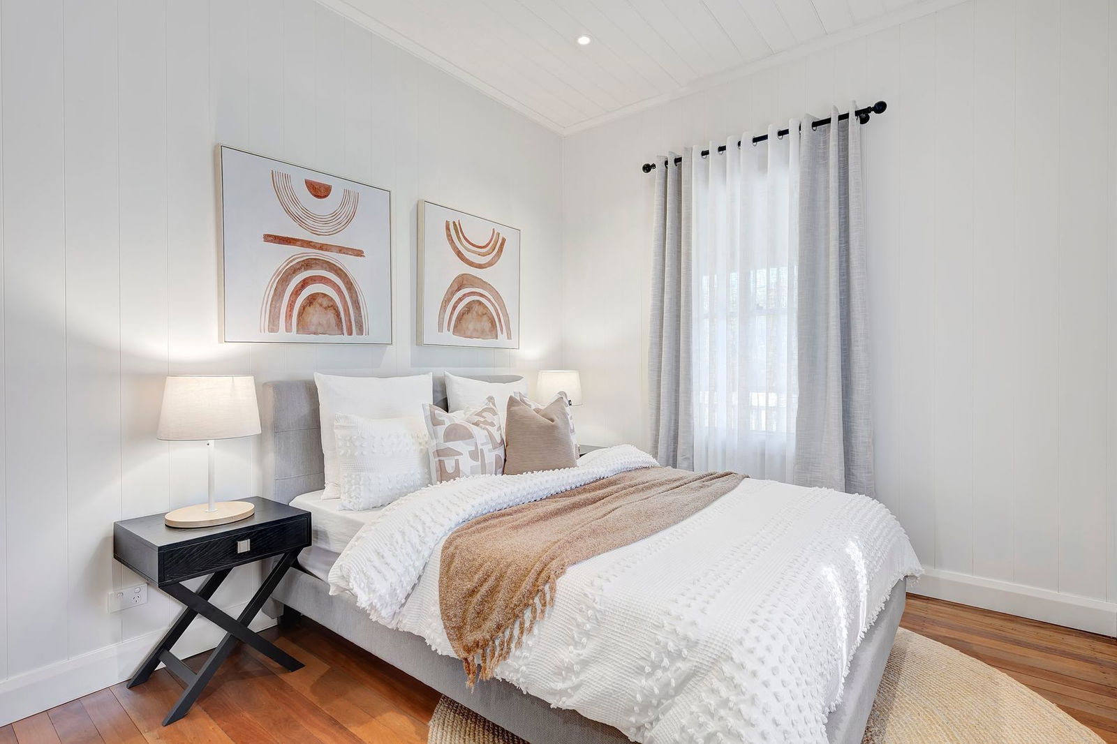 Beautifully renovated and thoughtfully designed worker's cottage, this home effortlessly blends classic charm with modern comfort. Featuring 2.9m high T & G ceilings, VJ wall paneling, and ample storage throughout, it offers both style and practicality. Inside, you'll find two generous bedrooms, a light-filled living area, and a stunning eat-in kitchen that flows seamlessly to the rear deck through bi-fold doors, perfect for indoor-outdoor living and entertaining. Enjoy year-round comfort with ducted air-conditioning throughout. Whether you're a first home buyer, investor, or simply seeking a low-maintenance lifestyle, this picture-perfect property presents an exceptional opportunity.