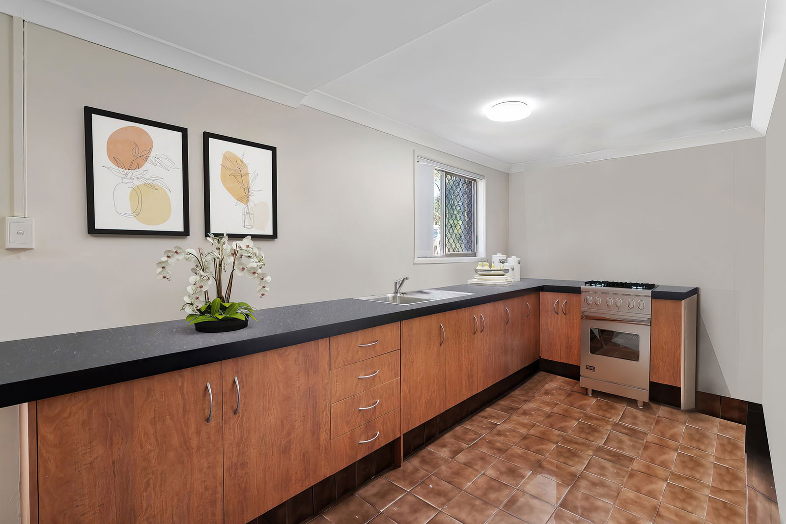 • Contemporary kitchen with electric appliances and ample storage