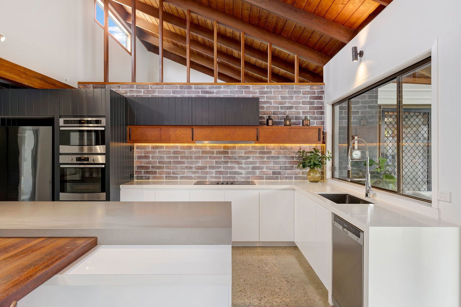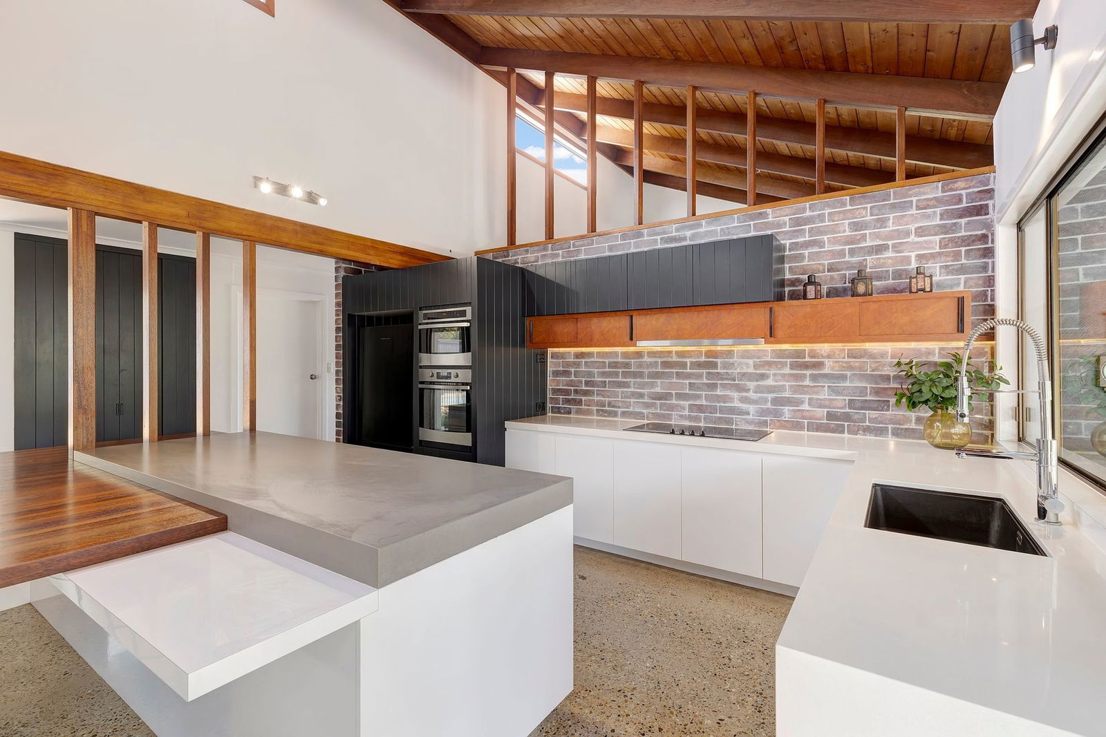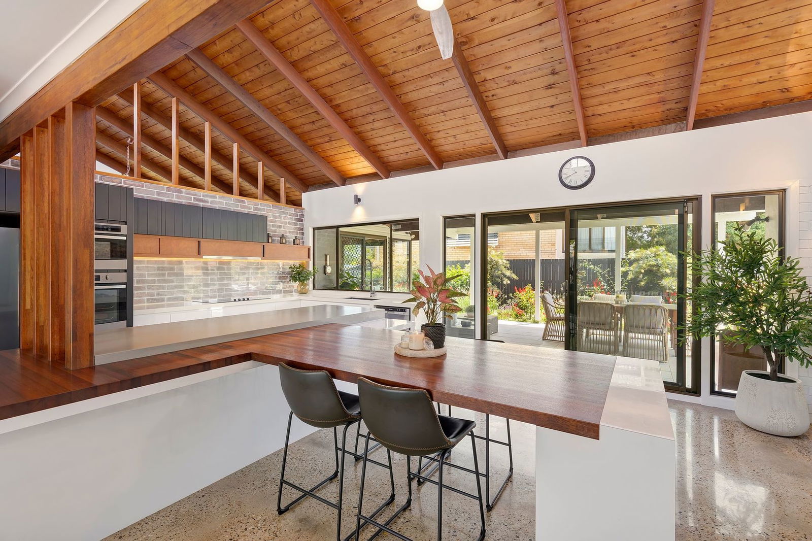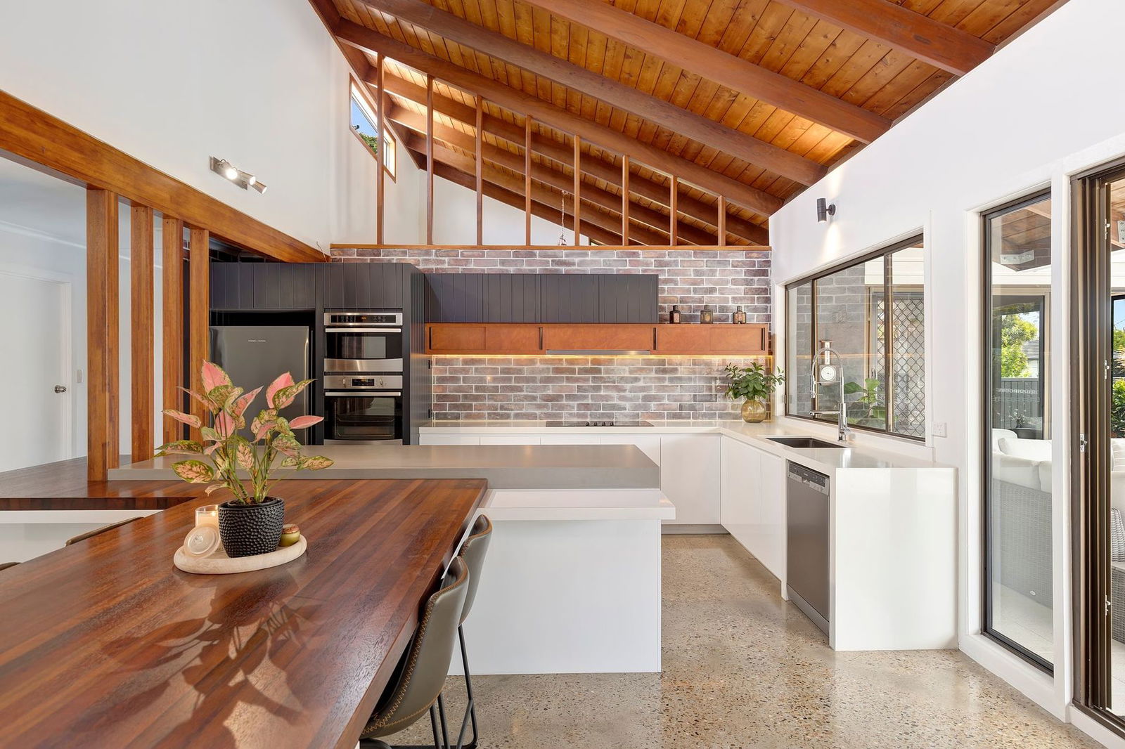 Originally built in 1975, showcasing soaring cathedral ceilings with exposed timber beams, feature brick walls, a raised fireplace with a copper hood, and distinctive polished concrete floors, this stunning mid-century inspired home will impress from the moment you enter. Fully renovated to the highest standard, the home is move-in ready and offers an effortless blend of architectural character and modern luxury. Expansive windows and glass doors flood the interior with natural light, creating a bright and inviting atmosphere throughout. At the heart of the home is the oversized entertainer's kitchen, complete with a step-in pantry, elegant stone benchtops, and a built-in timber dining table. The master suite features a generous walk-in wardrobe and a beautifully appointed ensuite, creating a private retreat of comfort and style. Beautifully presented, this home is more than a place to live – it's a light-filled sanctuary made for family, lifestyle, and lasting memories.