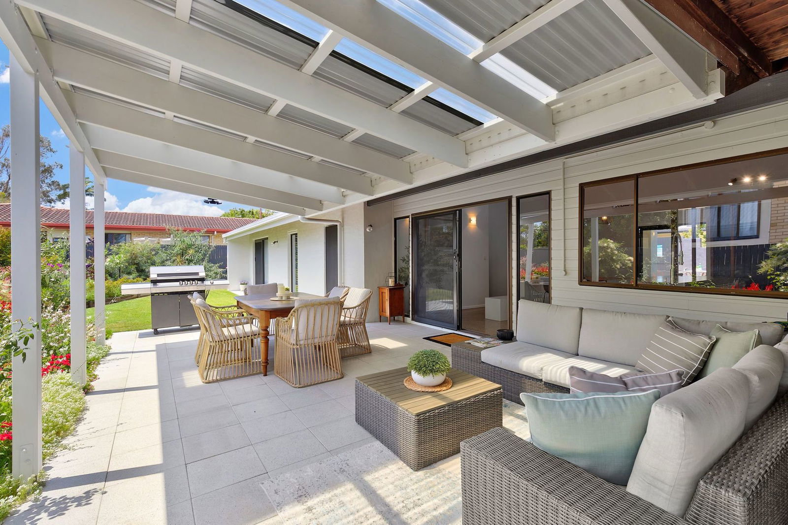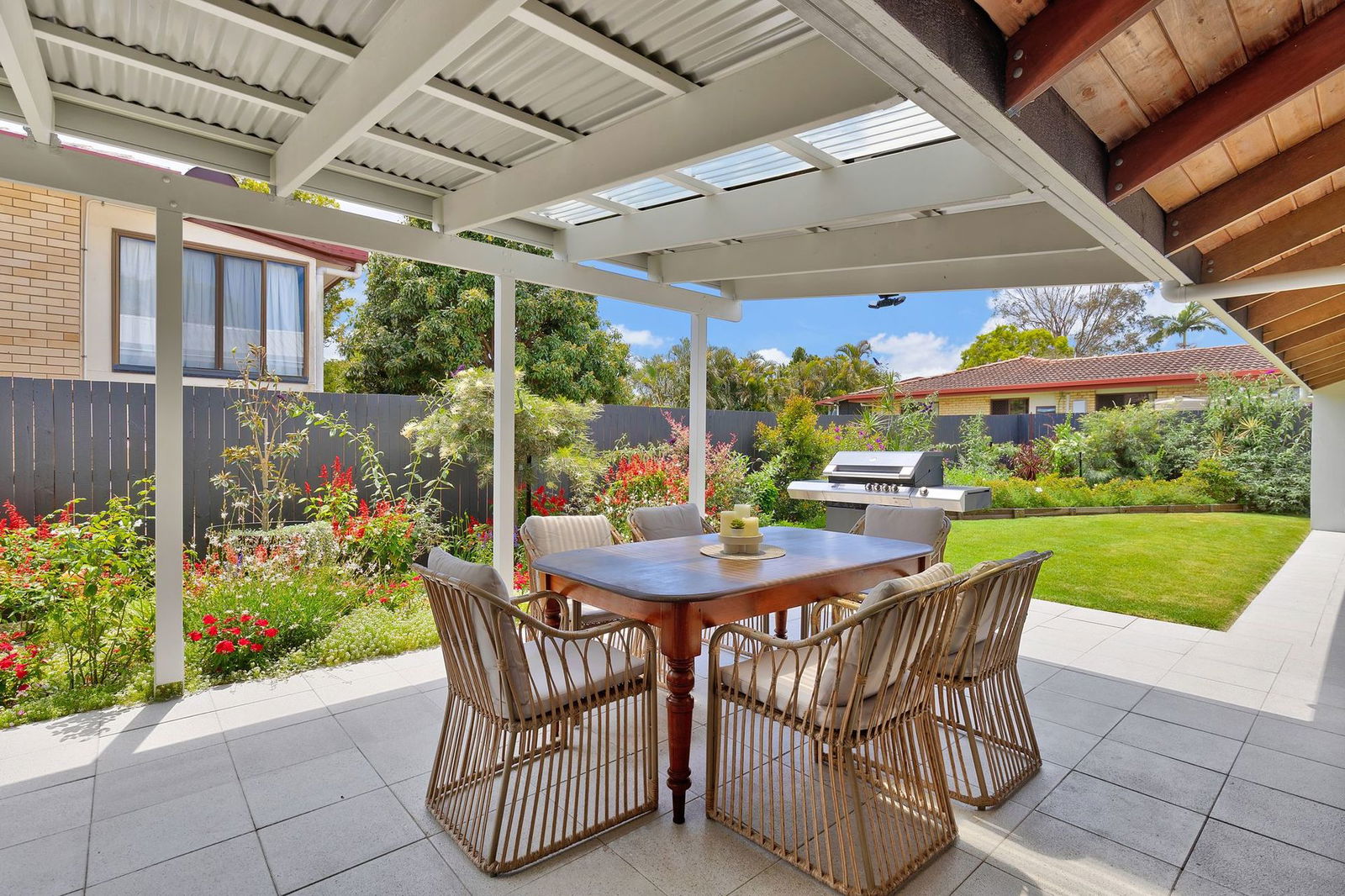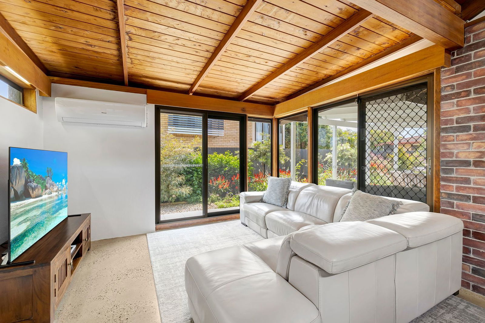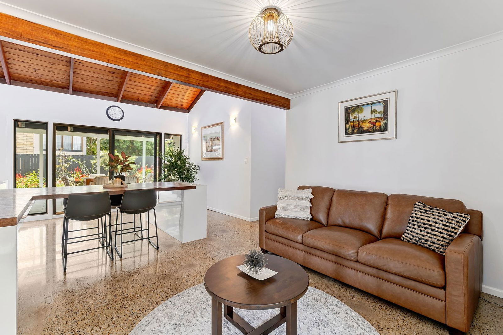 Originally built in 1975, showcasing soaring cathedral ceilings with exposed timber beams, feature brick walls, a raised fireplace with a copper hood, and distinctive polished concrete floors, this stunning mid-century inspired home will impress from the moment you enter. Fully renovated to the highest standard, the home is move-in ready and offers an effortless blend of architectural character and modern luxury. Expansive windows and glass doors flood the interior with natural light, creating a bright and inviting atmosphere throughout. At the heart of the home is the oversized entertainer's kitchen, complete with a step-in pantry, elegant stone benchtops, and a built-in timber dining table. The master suite features a generous walk-in wardrobe and a beautifully appointed ensuite, creating a private retreat of comfort and style. Beautifully presented, this home is more than a place to live – it's a light-filled sanctuary made for family, lifestyle, and lasting memories.