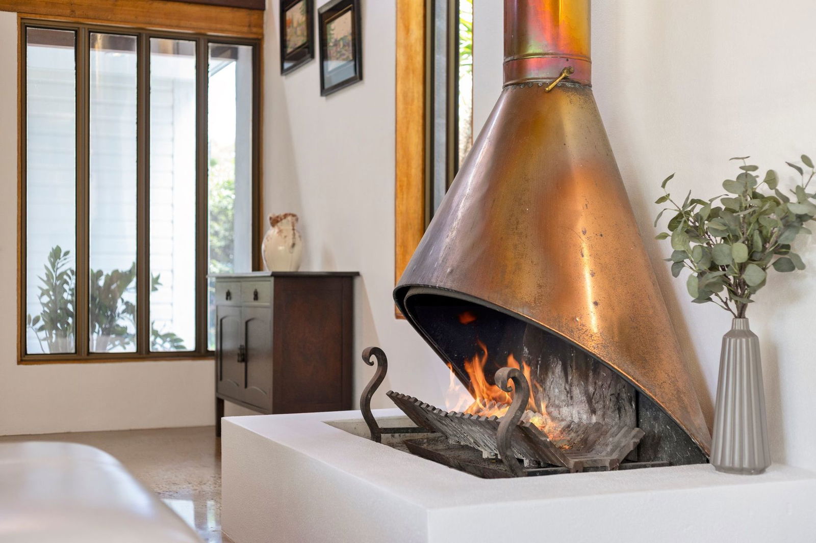 - Separate light-filled lounge area with fireplace and air conditioning