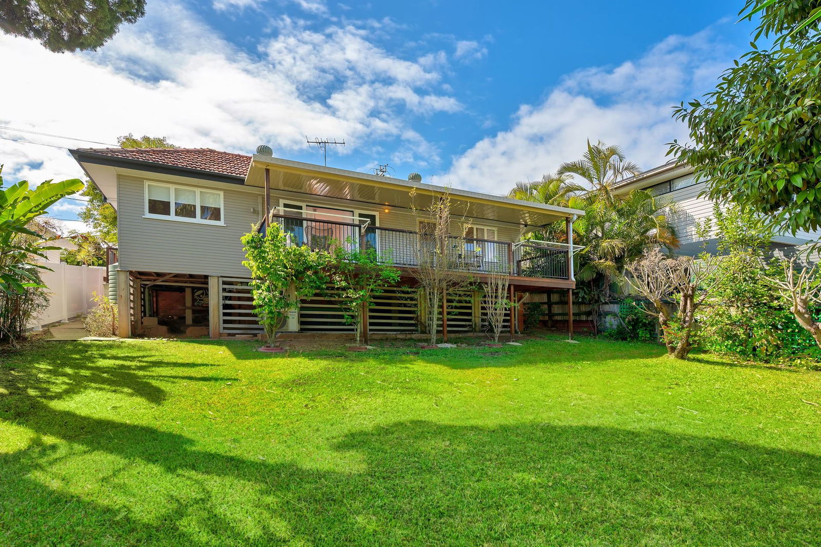 - Large backyard with established gardens