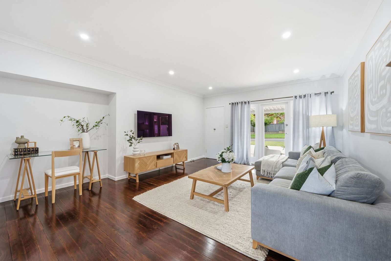 - Generous sized lounge, with study nook, air conditioning and polished floorboards