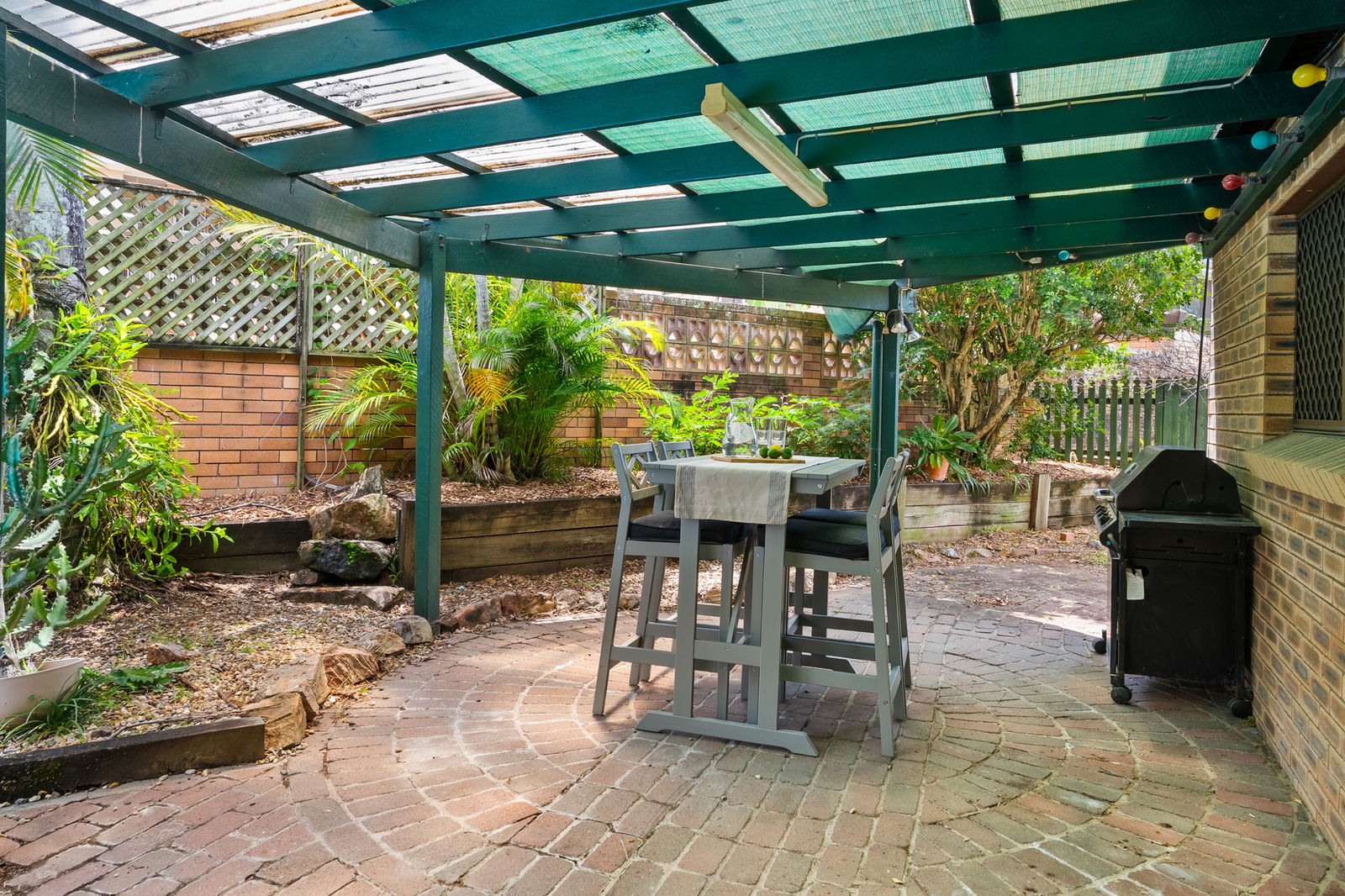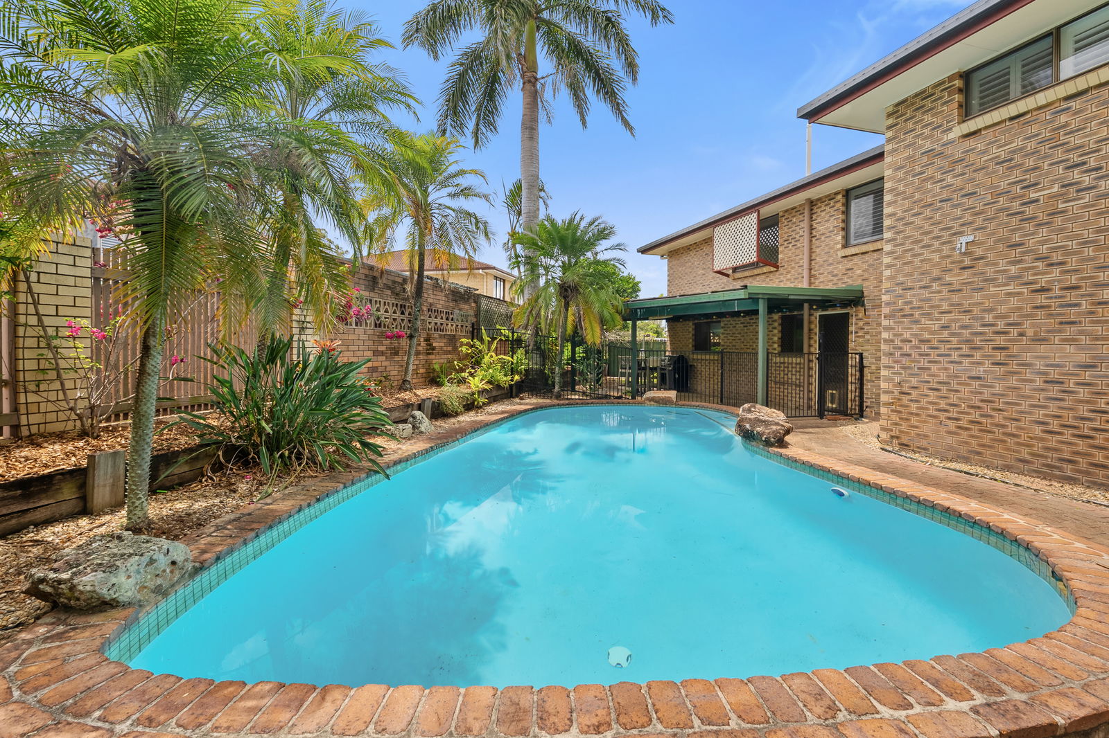 • Private rear patio overlooking the in-ground pool and leafy surrounds