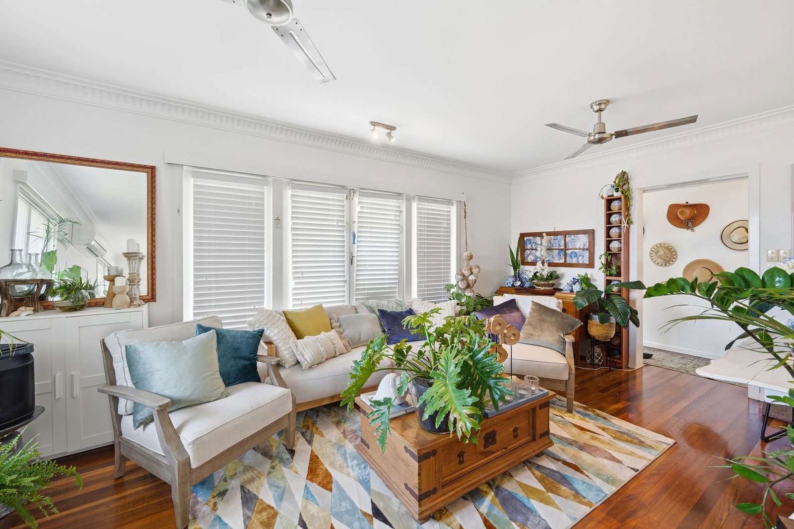 - Air conditioned lounge room, with French doors connecting to the front and back patio areas