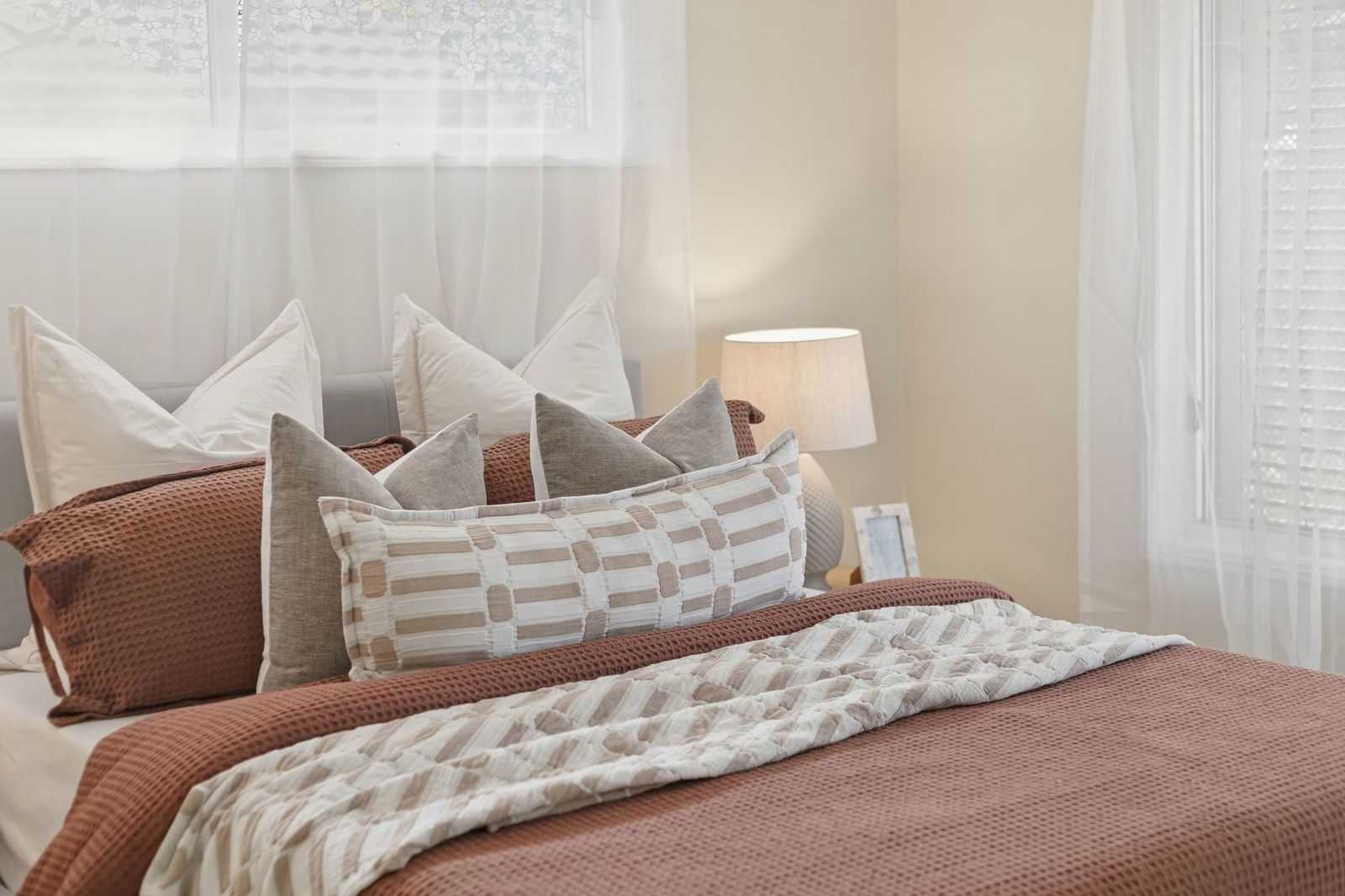 - Security screens throughout plus outdoor window grates at the front for added security