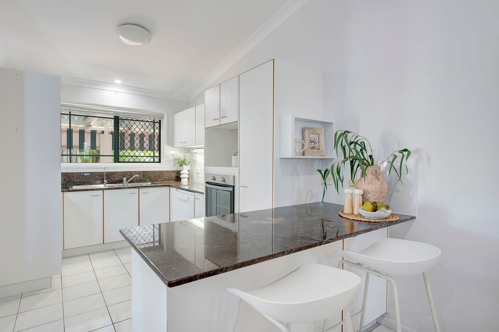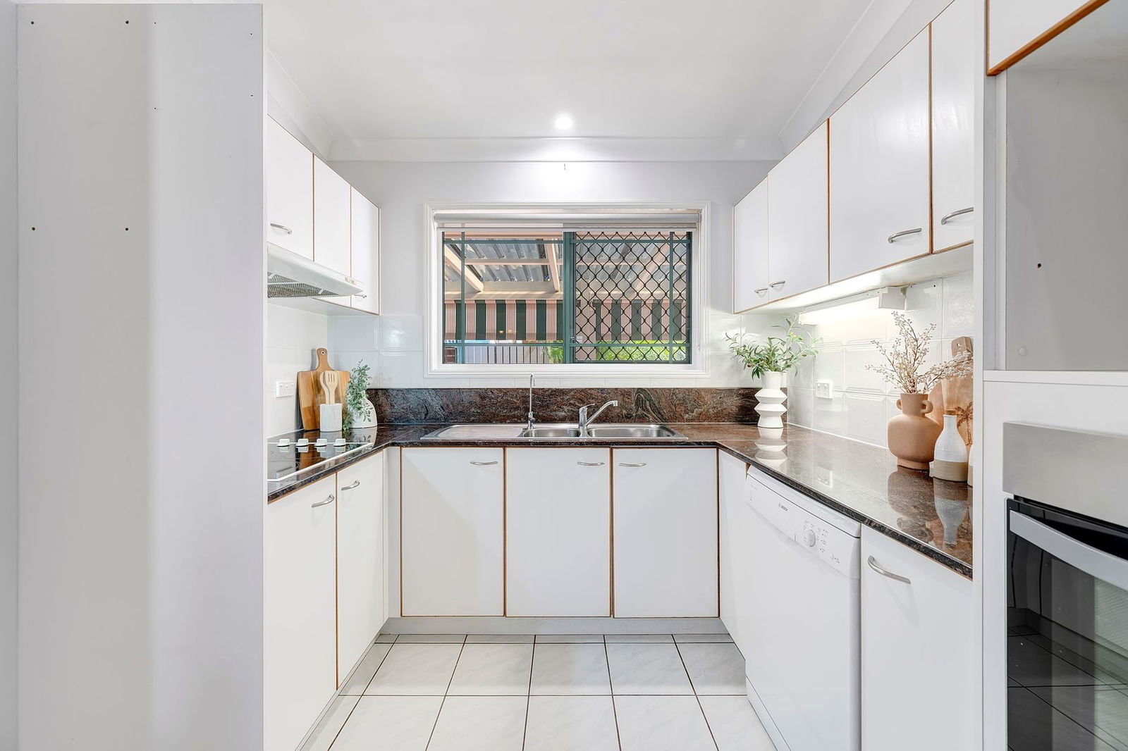 - Well-appointed kitchen with electric cooktop, dishwasher and ample storage