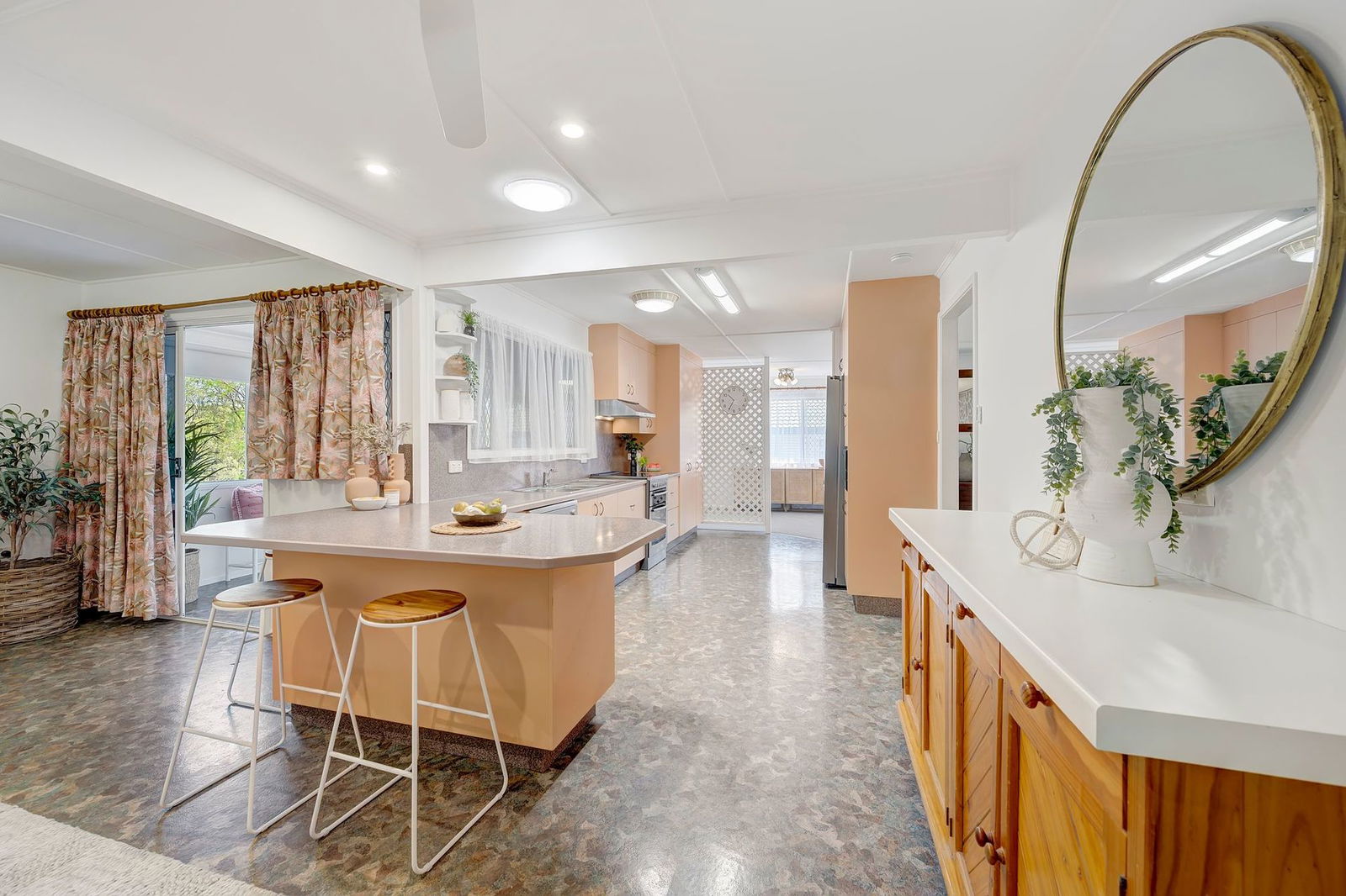 - Huge family kitchen with ample bench space and storage, breakfast bar and dishwasher