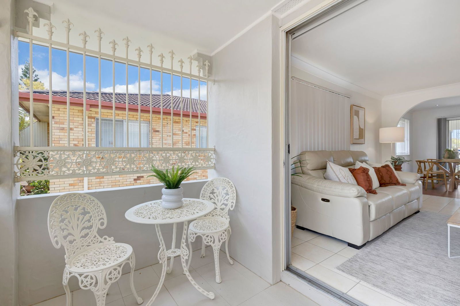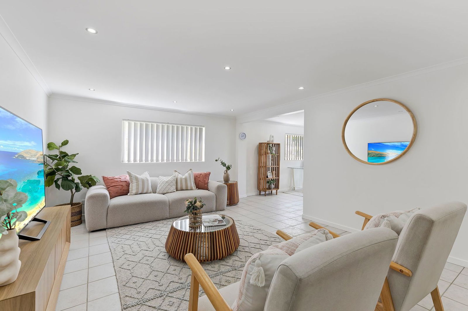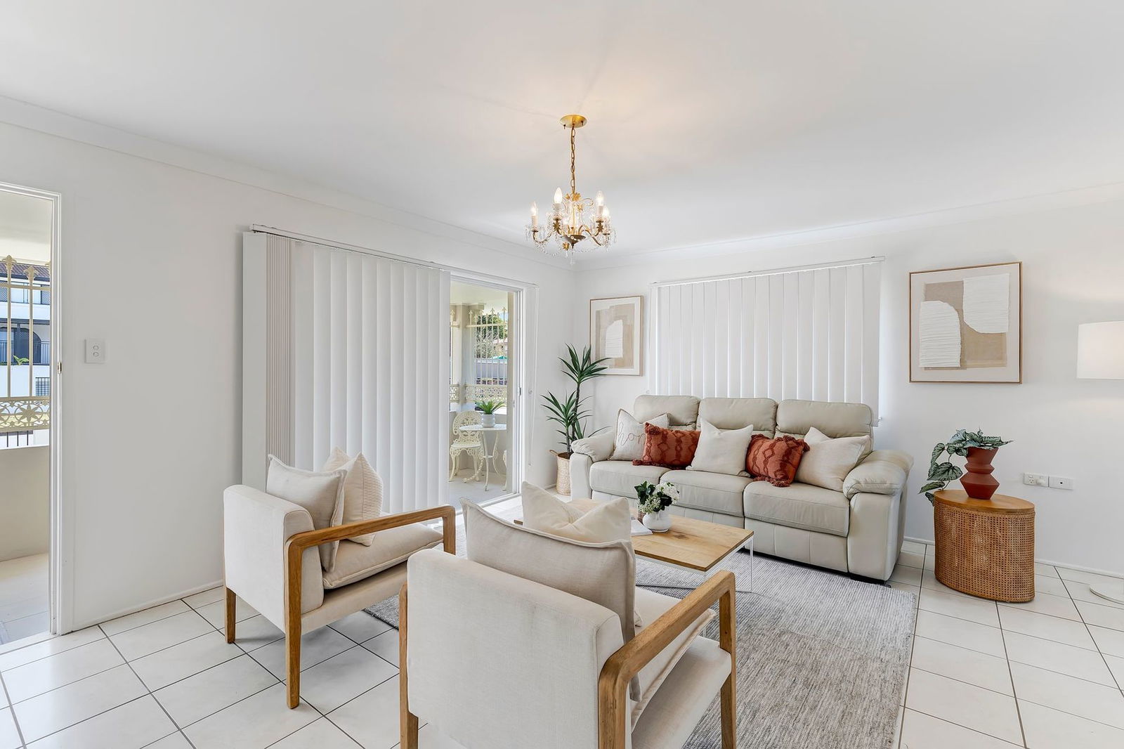 - Large living area with security screens and access to the front balcony