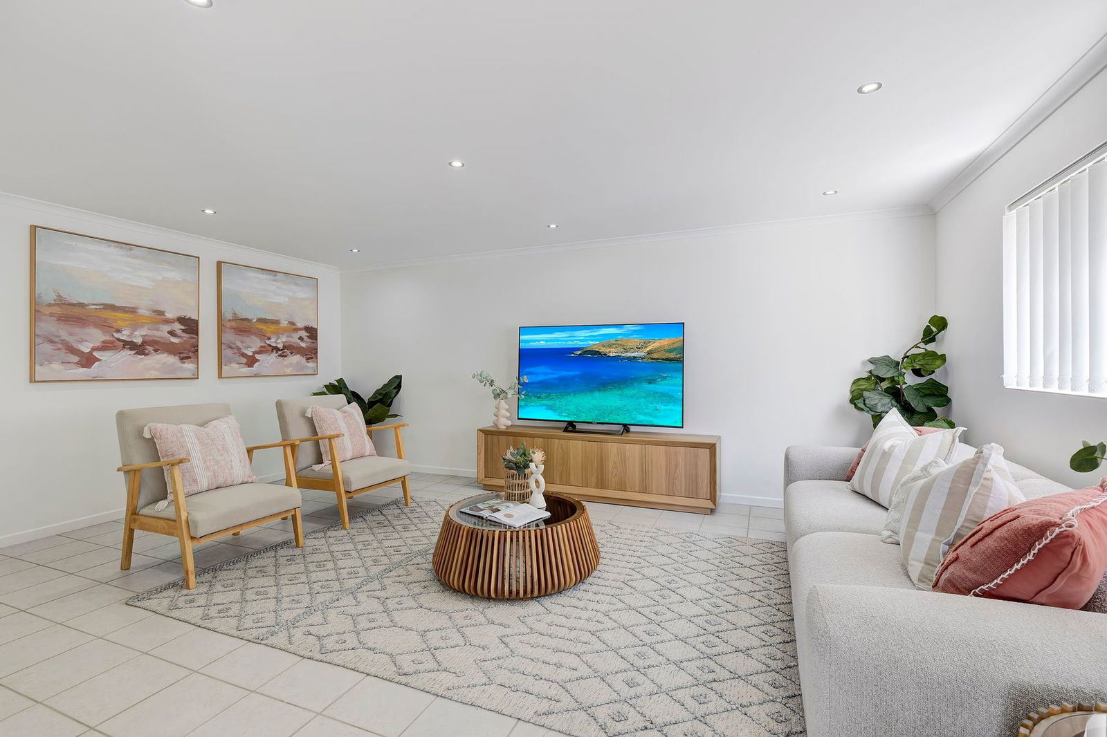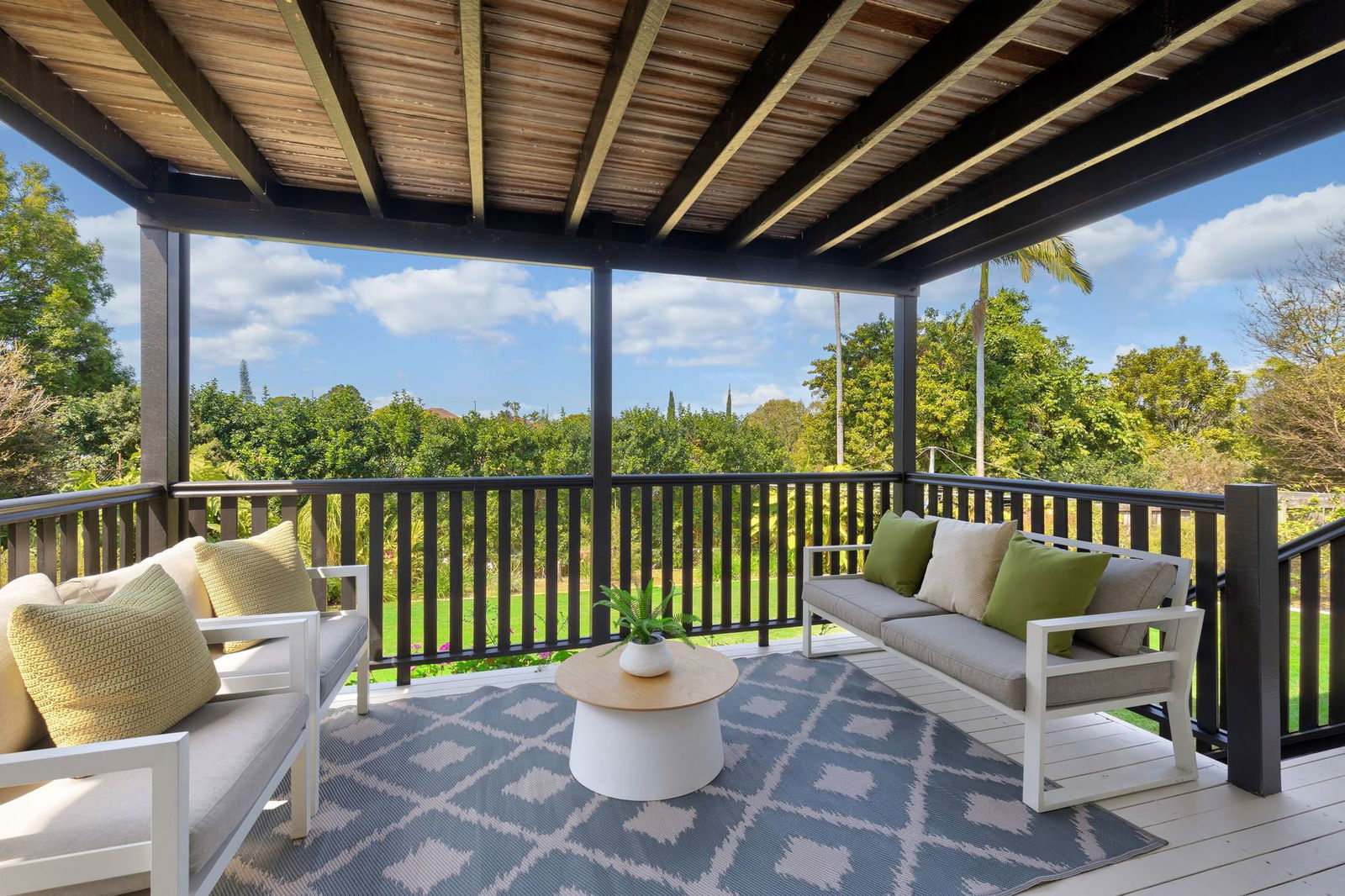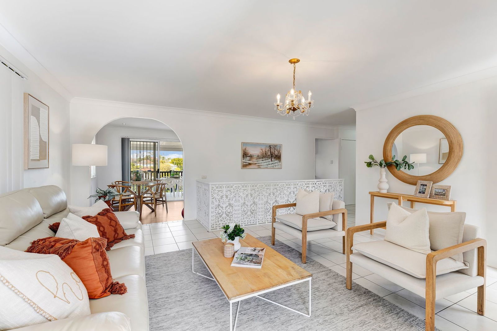 - Large living area with security screens and access to the front balcony