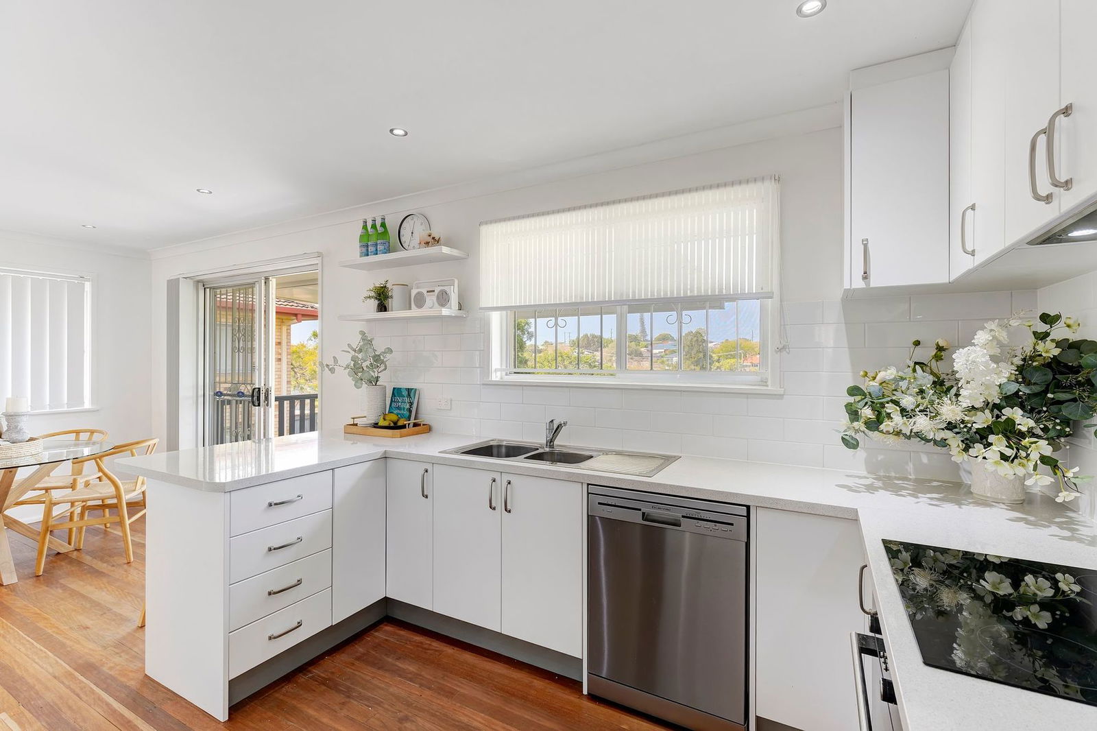 - Renovated kitchen and dining area with ample storage, stainless steel appliances and dishwasher and access to the insulated covered deck with stunning urban views