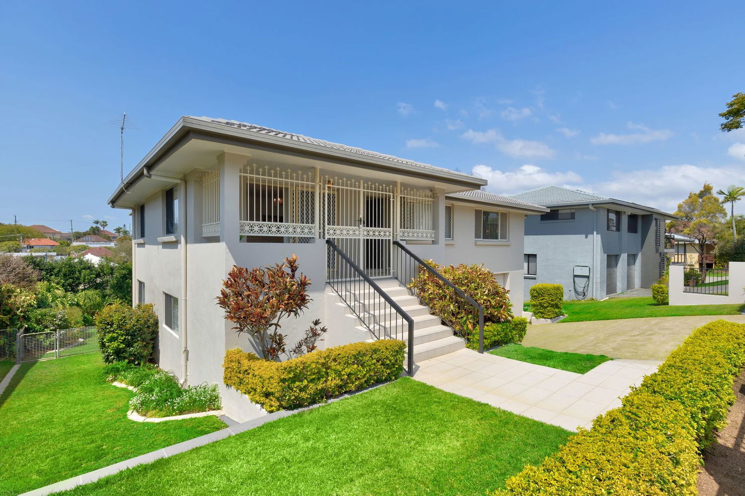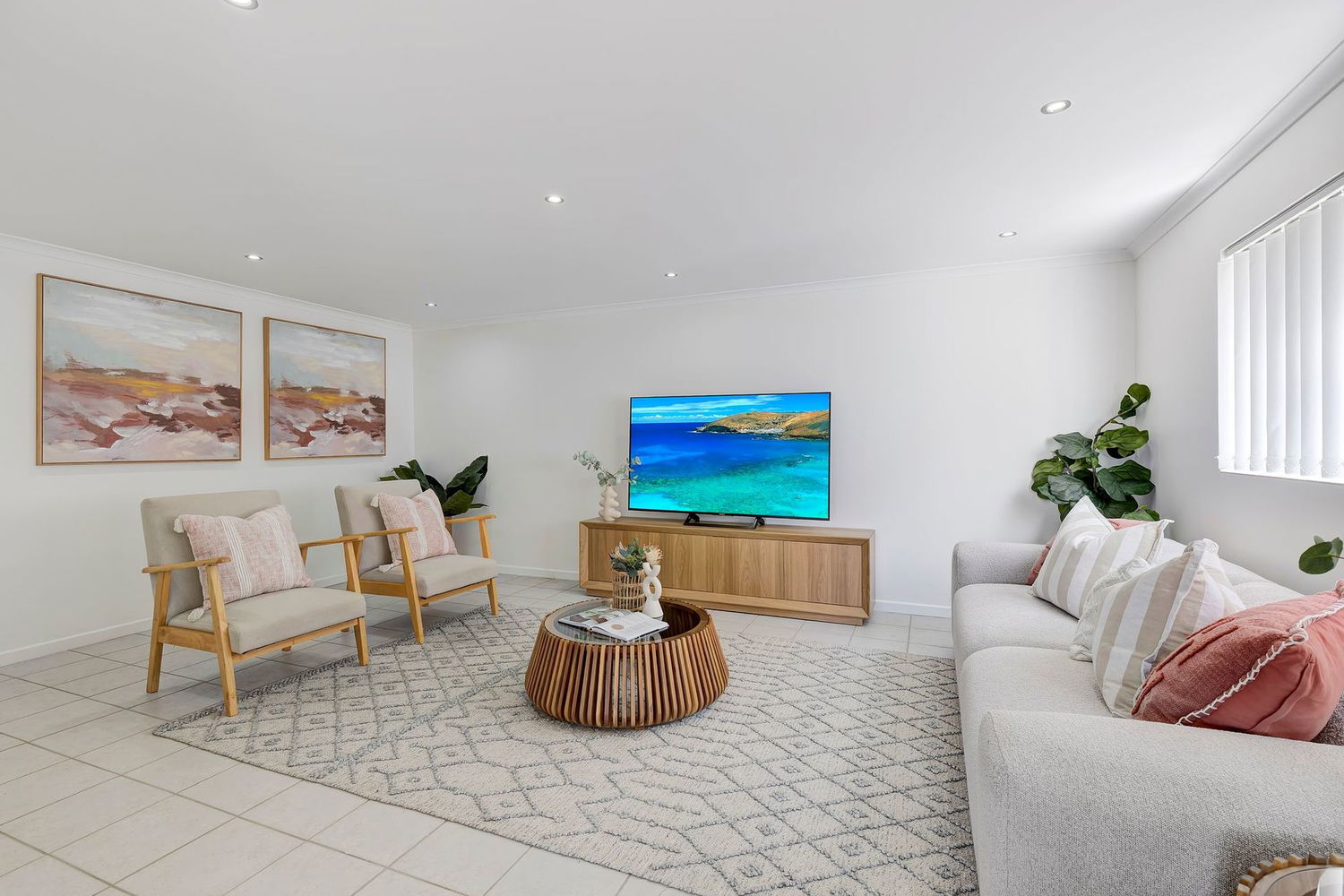 - Large living area with security screens and access to the front balcony