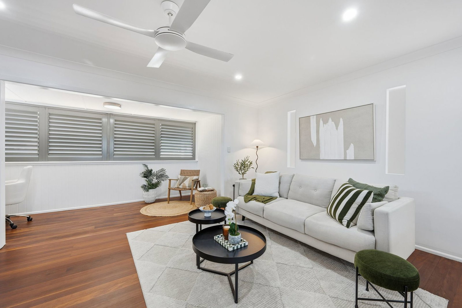 - Polished timber floors and plantation shutters throughout