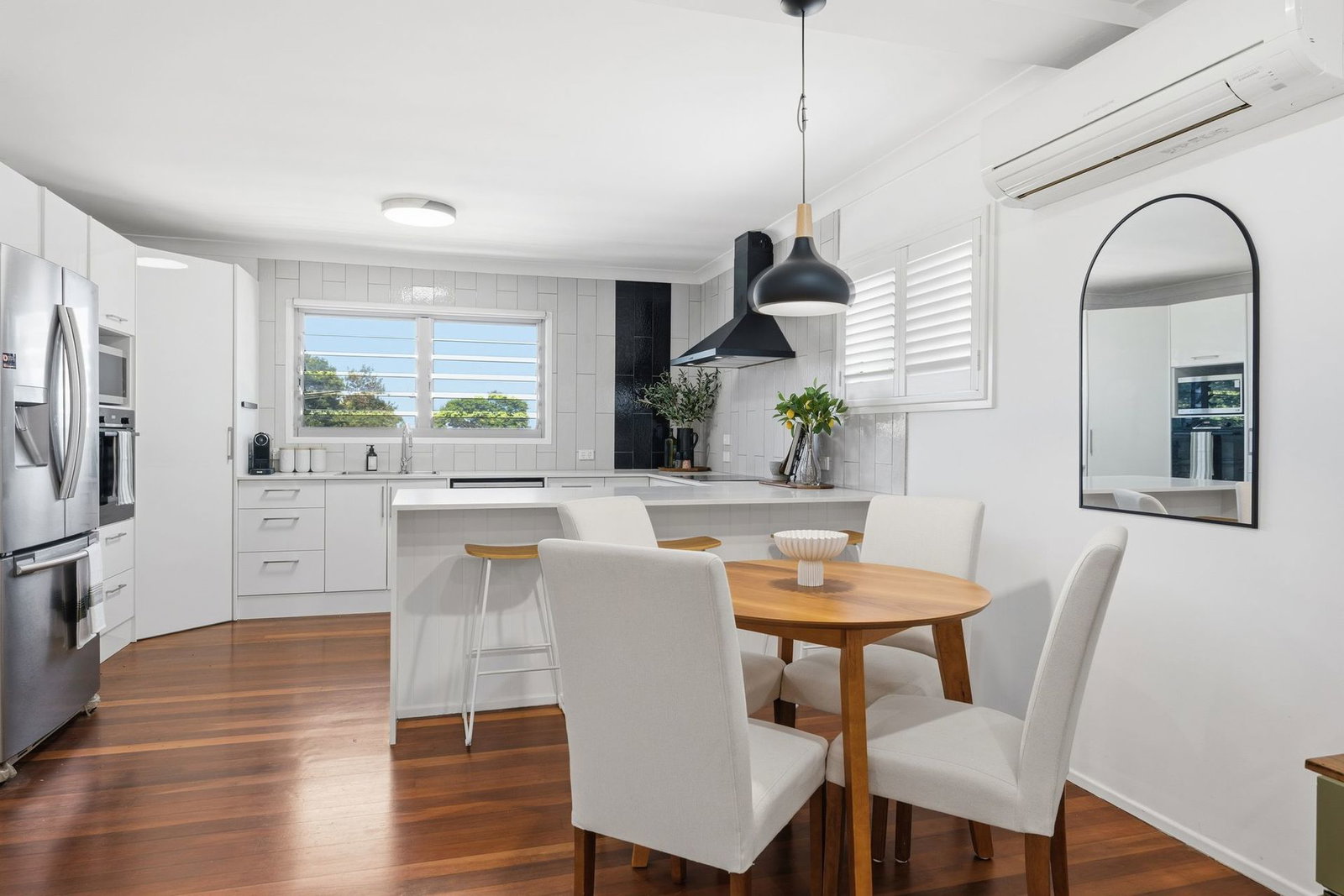 Perfectly positioned in one of Aspley's most tightly held and sought-after pockets, this beautifully maintained 1960s home offers an elevated sense of comfort, space and refined family living. Nestled in a quiet street and capturing cooling breezes, it delivers an exceptional lifestyle of relaxed sophistication and effortless entertaining. Upstairs, polished timber floors add warmth and sophistication, complementing three generously sized bedrooms, a well-appointed family bathroom and a stylish designer kitchen crafted for both everyday living and elegant entertaining.