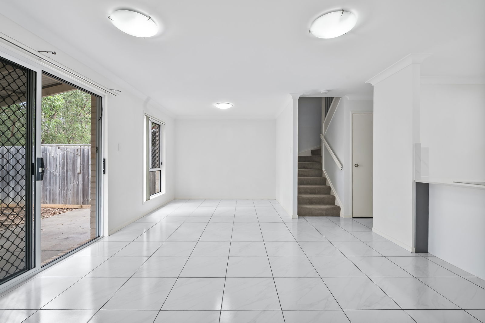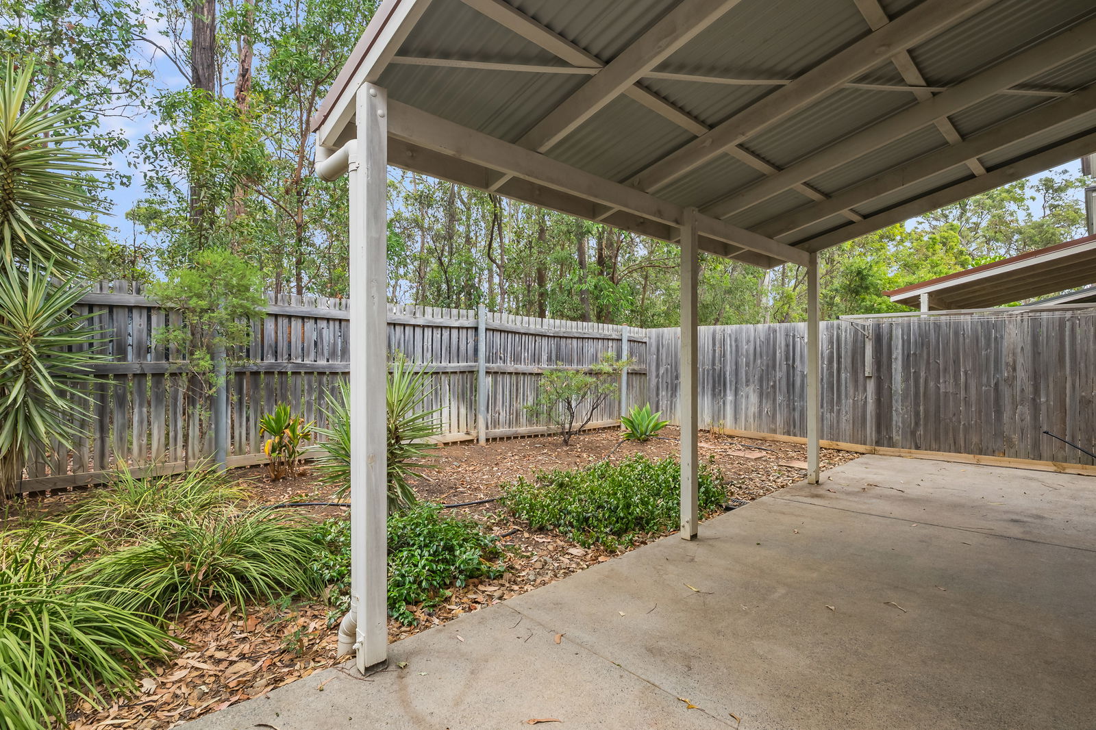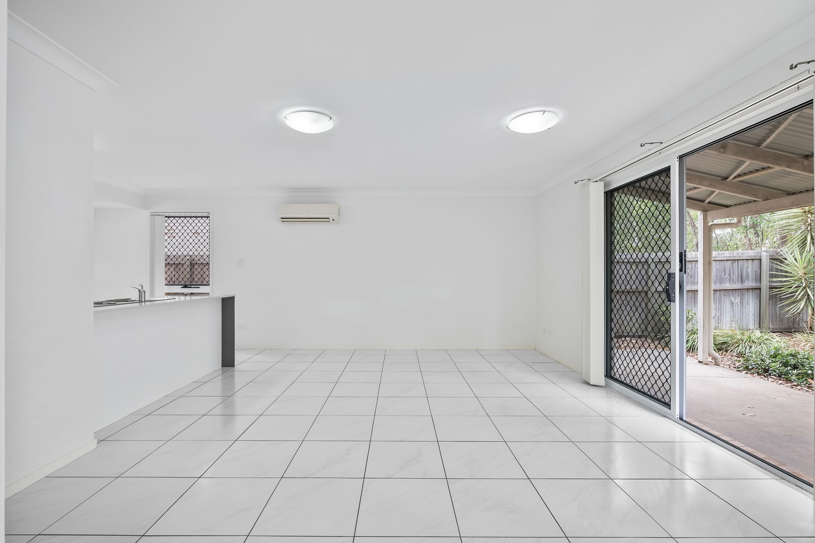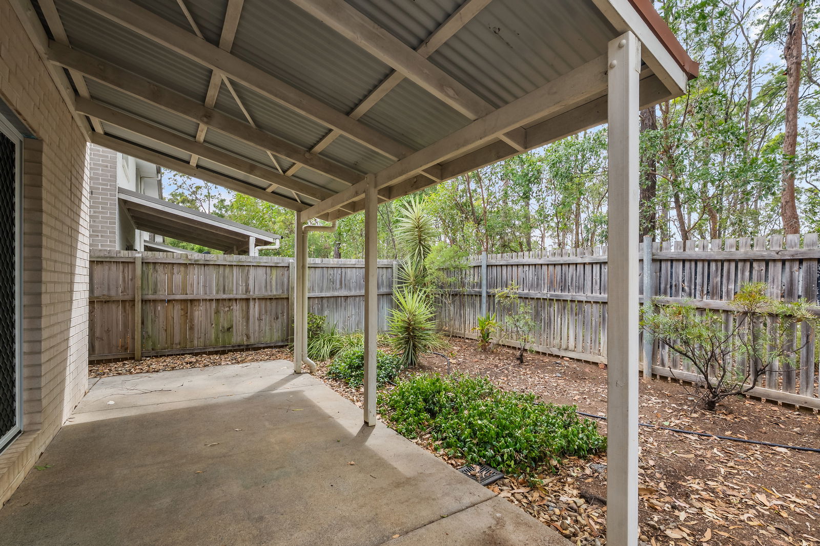 - Covered outdoor patio flowing to a low-maintenance courtyard with leafy outlook