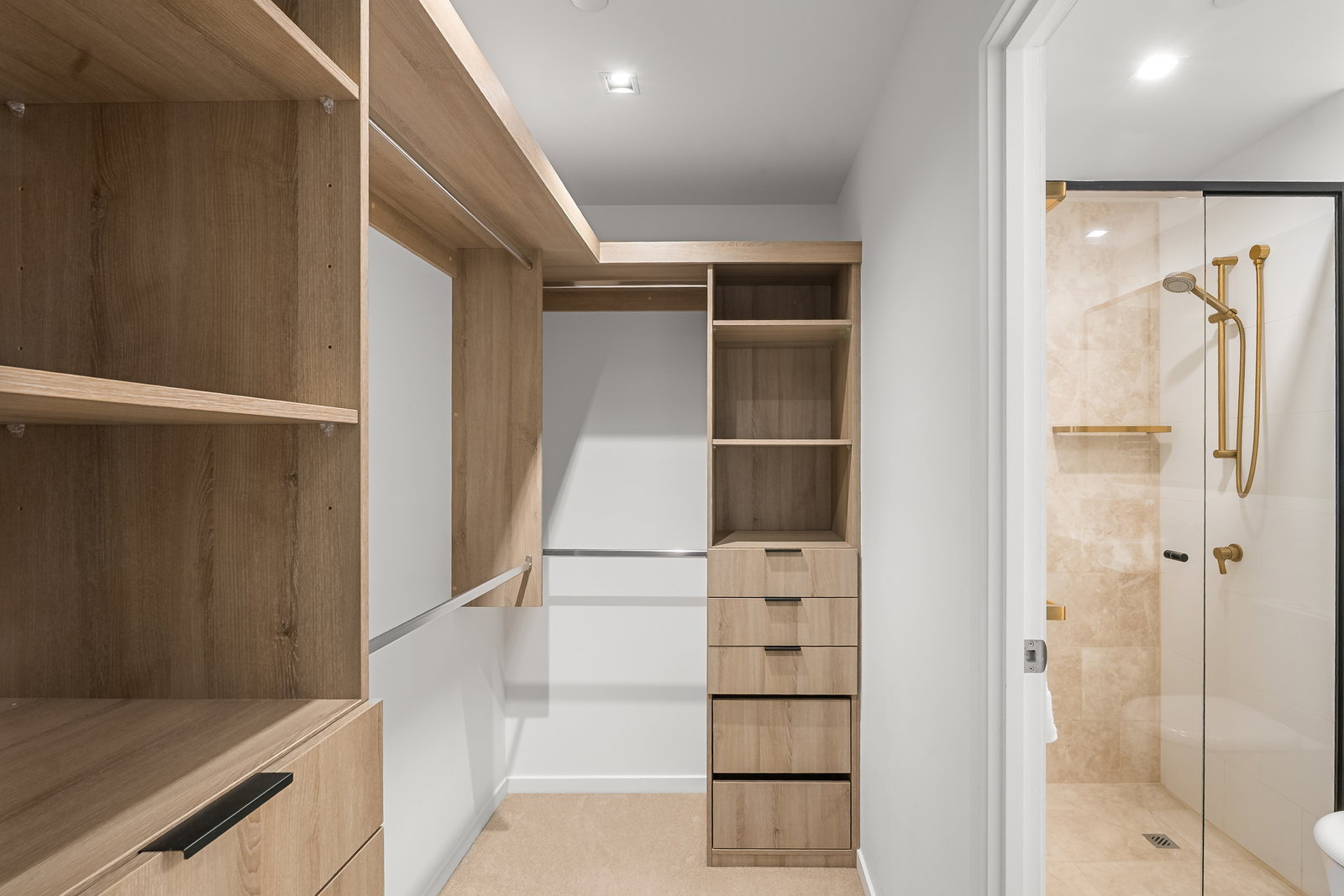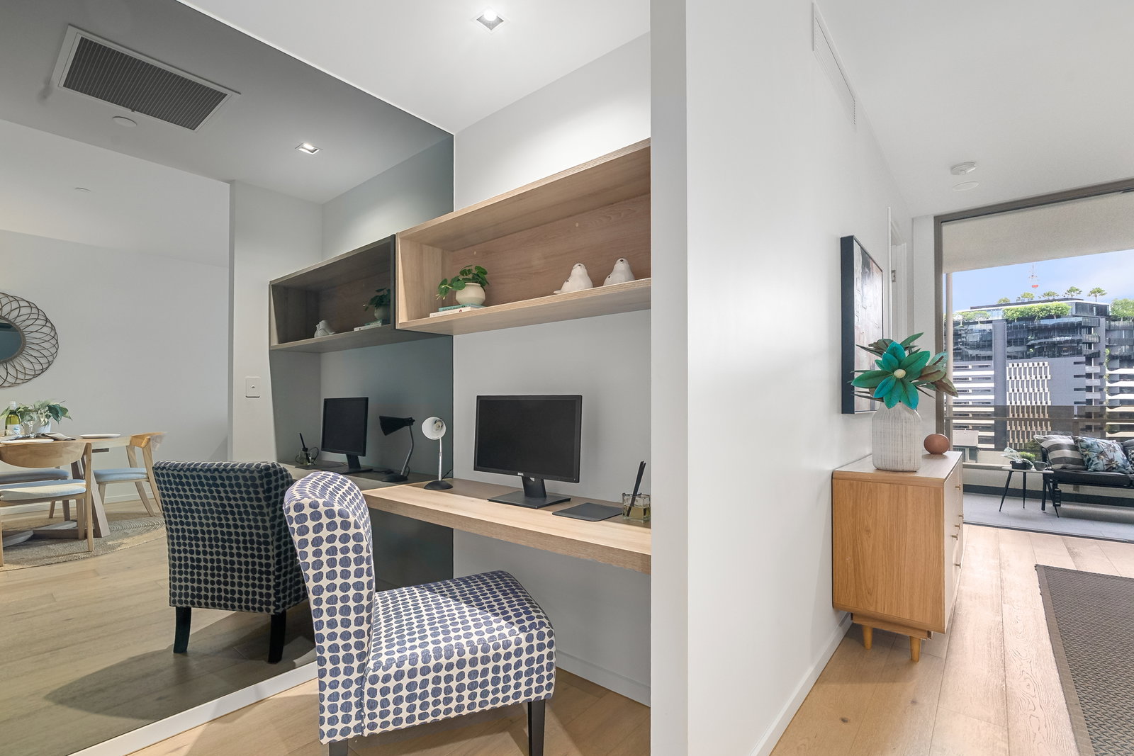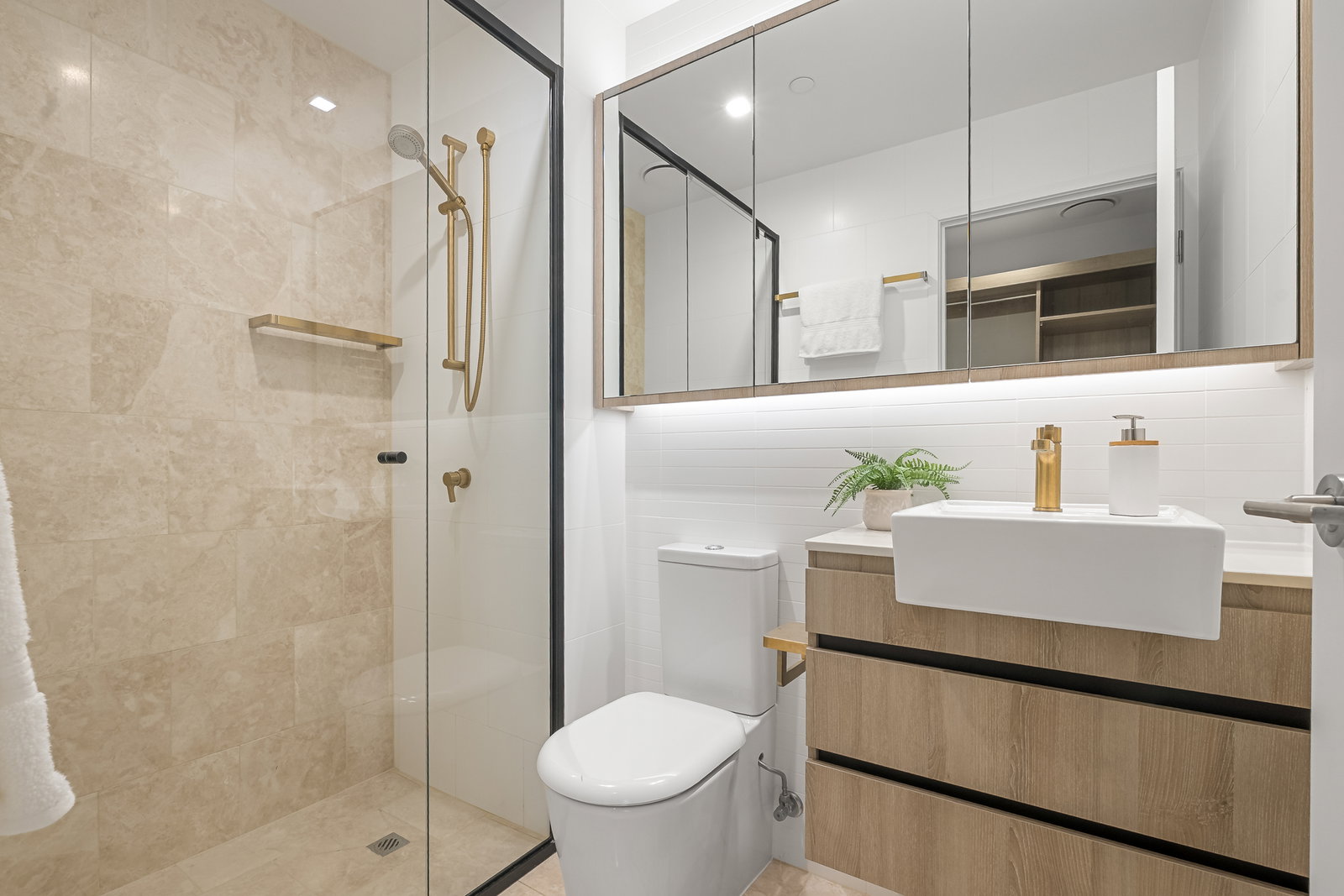 Both bedrooms are thoughtfully positioned for privacy and comfort, each offering luxurious marble ensuites, double hanging walk-in robes and direct balcony access. The second bedroom also includes a built-in desk with data points, creating a convenient space for working from home.