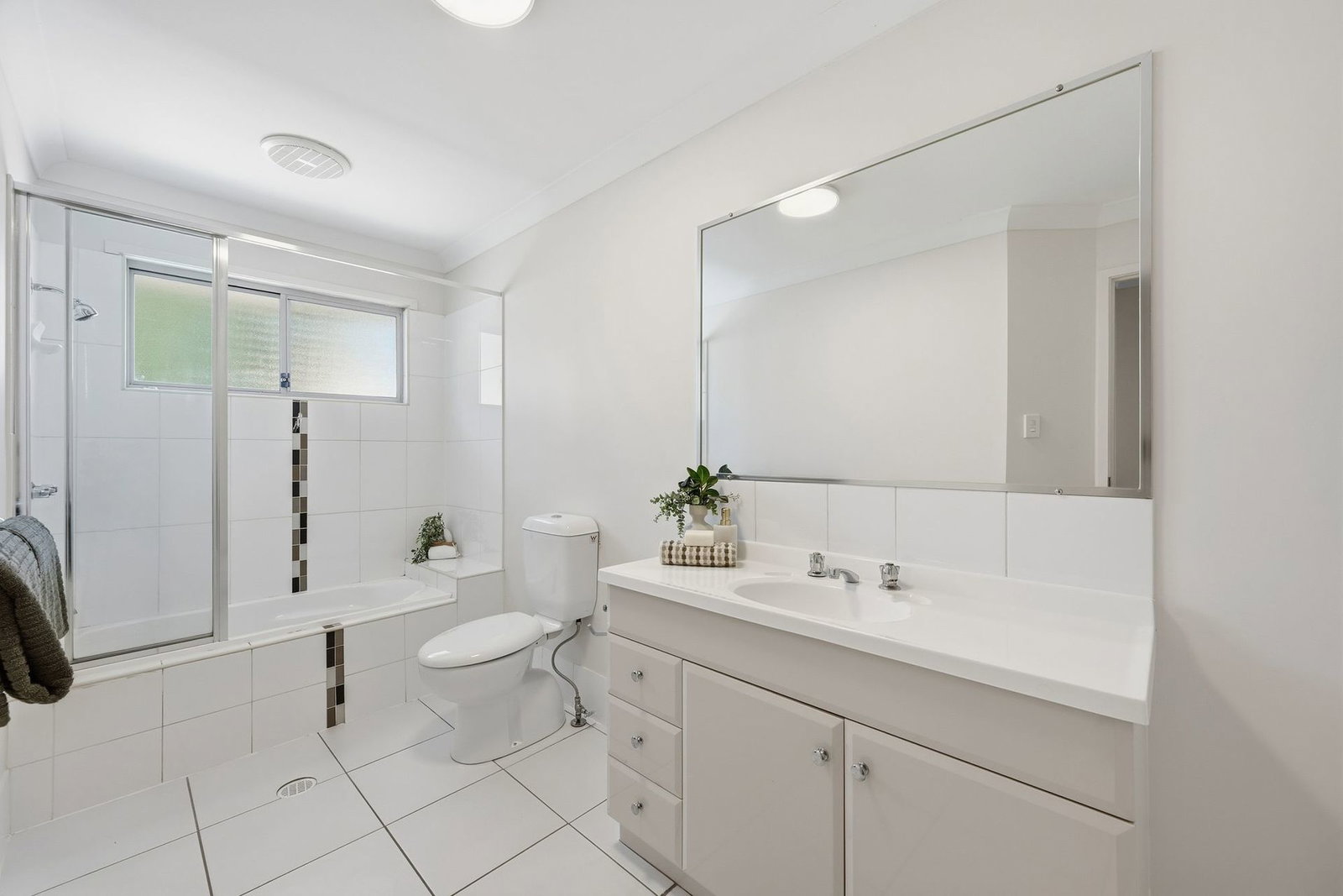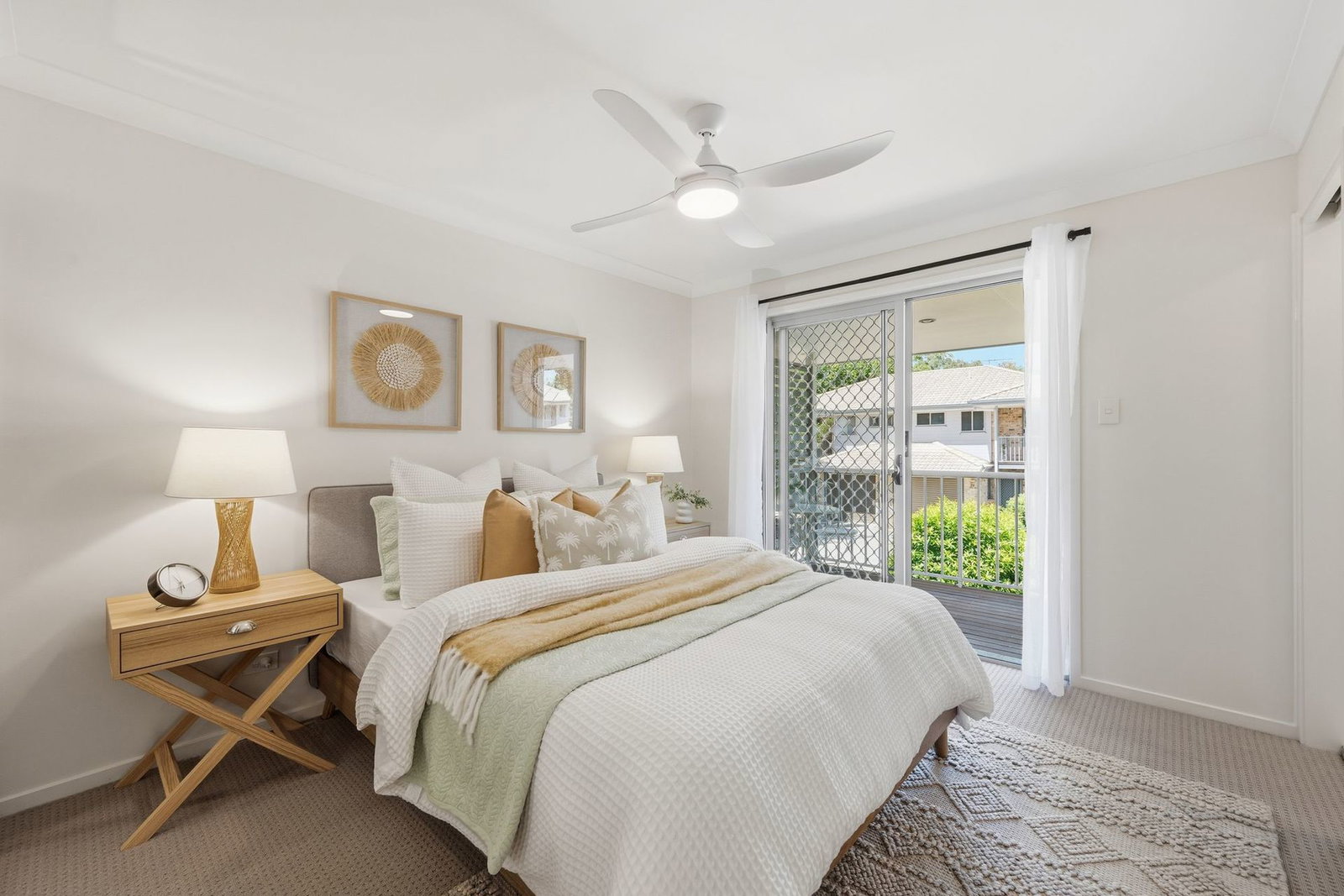 - Three bedrooms with fans, built-in wardrobes and insect screen, master with ensuite and balcony