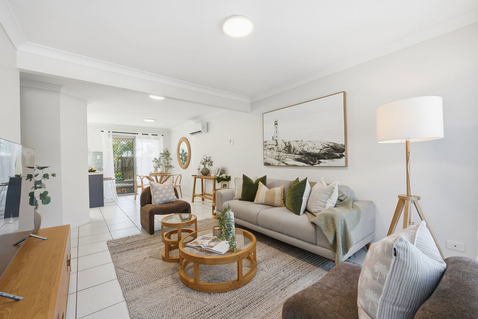 - Spacious living, kitchen dining area with air conditioning and security screens